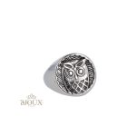 Anello chevalieur acciaio rodiato con croce e smalto nero