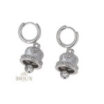 Orecchini cerchietto 10 mm con sfera bombata rodio