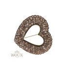 Spilla gioiello cuore con strass e pietra brown