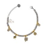 Bracciale spirale con beads rodio strass e quadrifoglio