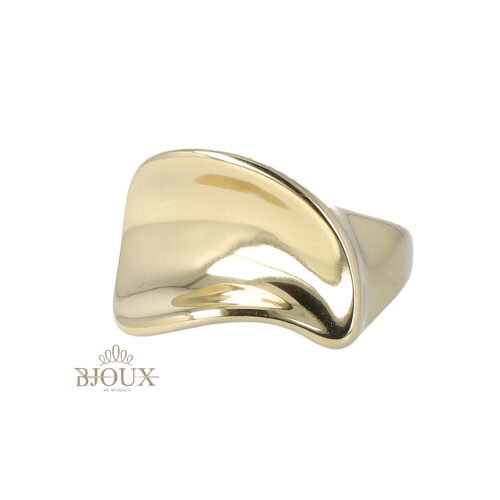 Anello di bigiotteria in acciaio fascia grande irregolare bombata 1,5×2,5 cm ,misura regolabile. Disponibile in gold e rodio.