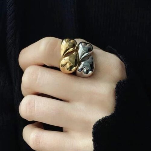 Anello di bigiotteria in acciaio con due cuori a gradazione . Fascia a misura regolabile. In due colorazioni