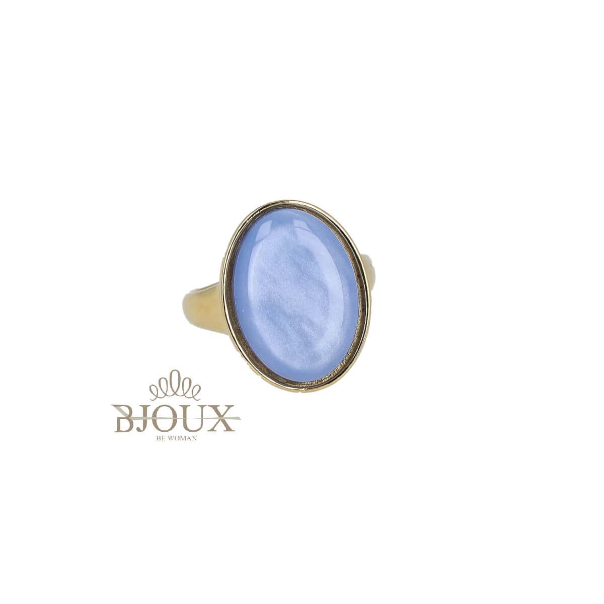 Anello taglio cabochon liscio e bombato, racchiuso in una cornice essenziale acciaio inossidabile dorato che mette in risalto la pietra centrale. Richiama l’estetica dei gioielli vintage degli anni ’50 e ’60, perfetto per un look elegante e sofisticato.