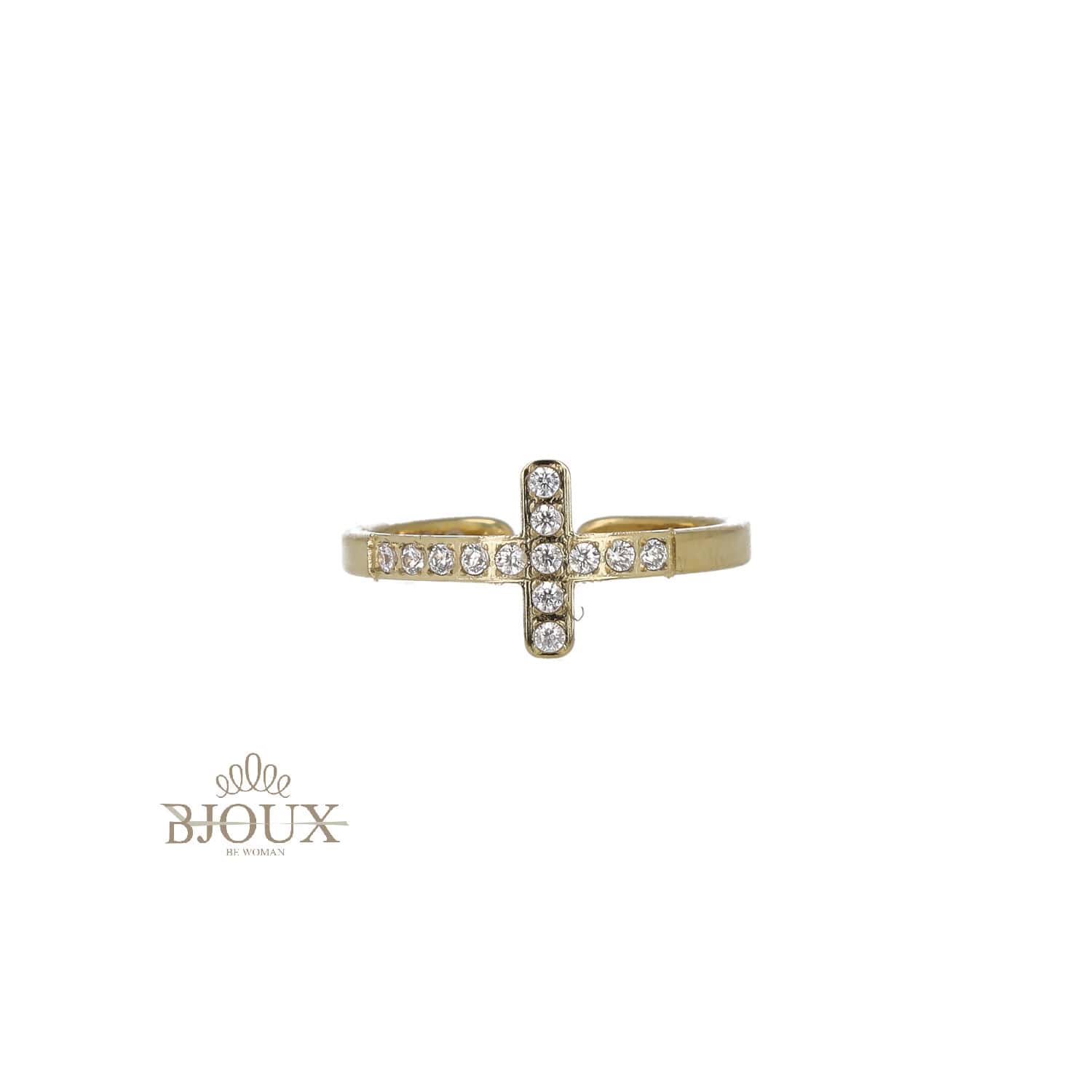 Anello in acciaio inossidabile anallergico con fascia aperta regolabile. Anello croce brillantinata 2 x 1 cm