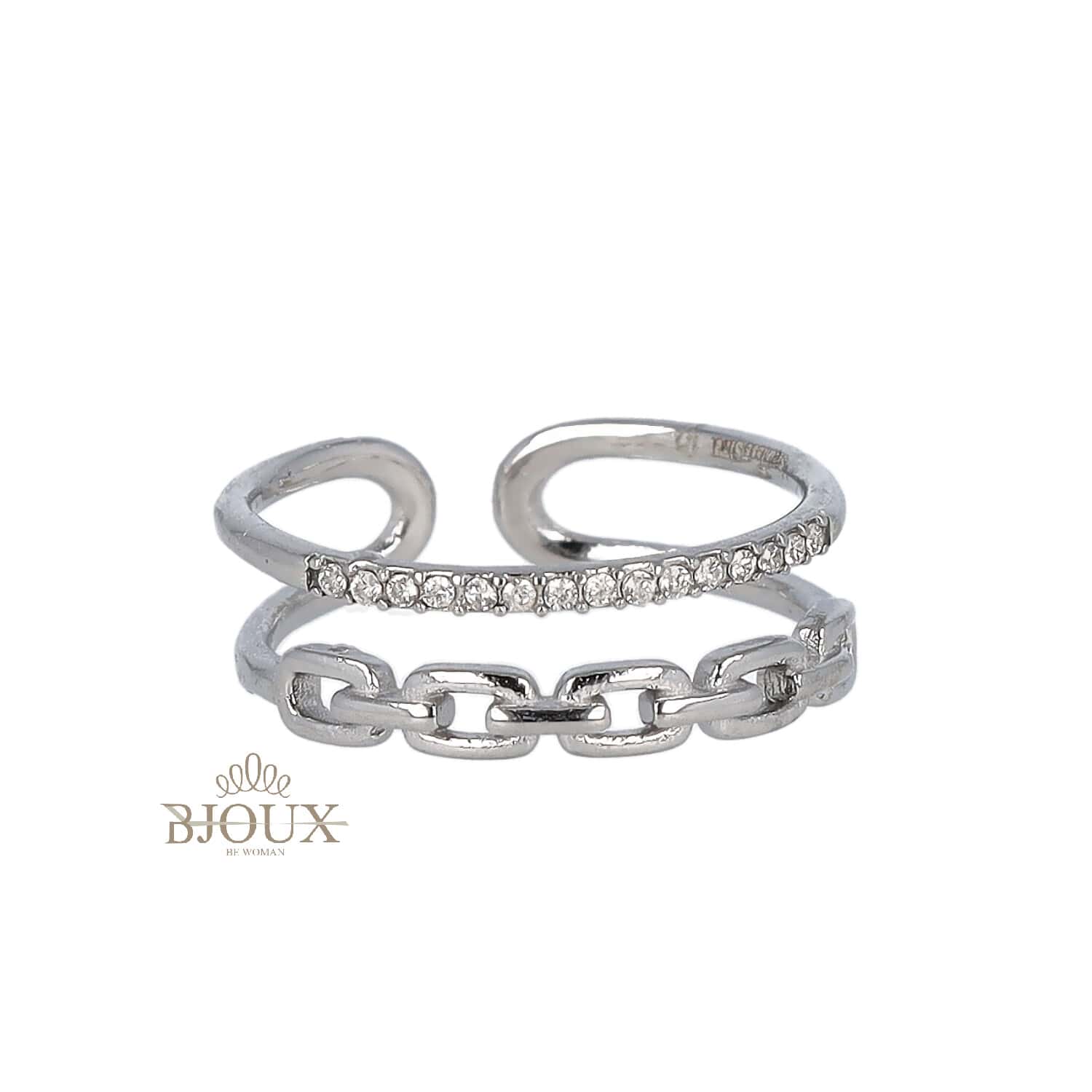 Anello di bigiotteria in acciaio inossidabile fascia con misura regolabile. Due fili con strass e intreccio