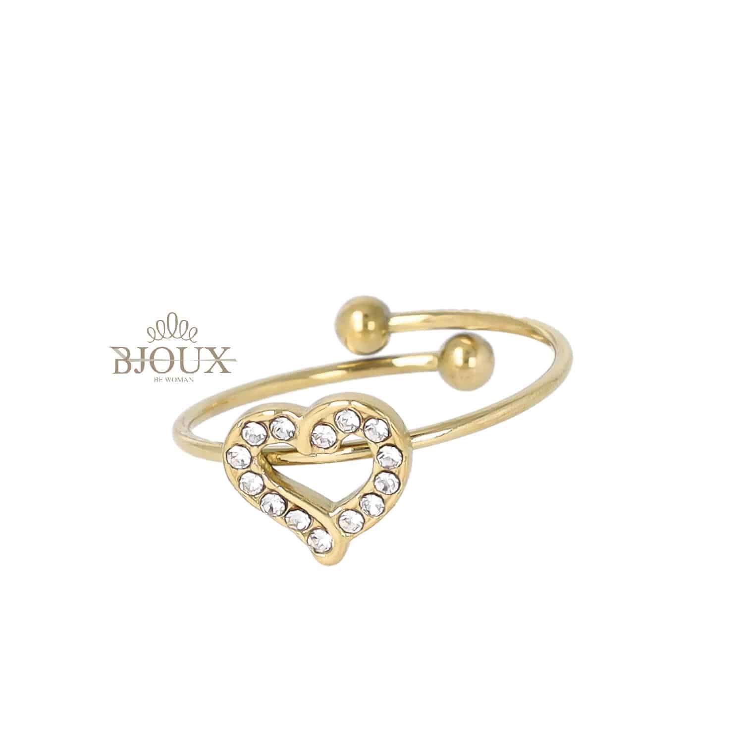 Anello di bigiotteria in acciaio inossidabile fascia regolabile fedina con fascia e cuore strass da 0,5 cm