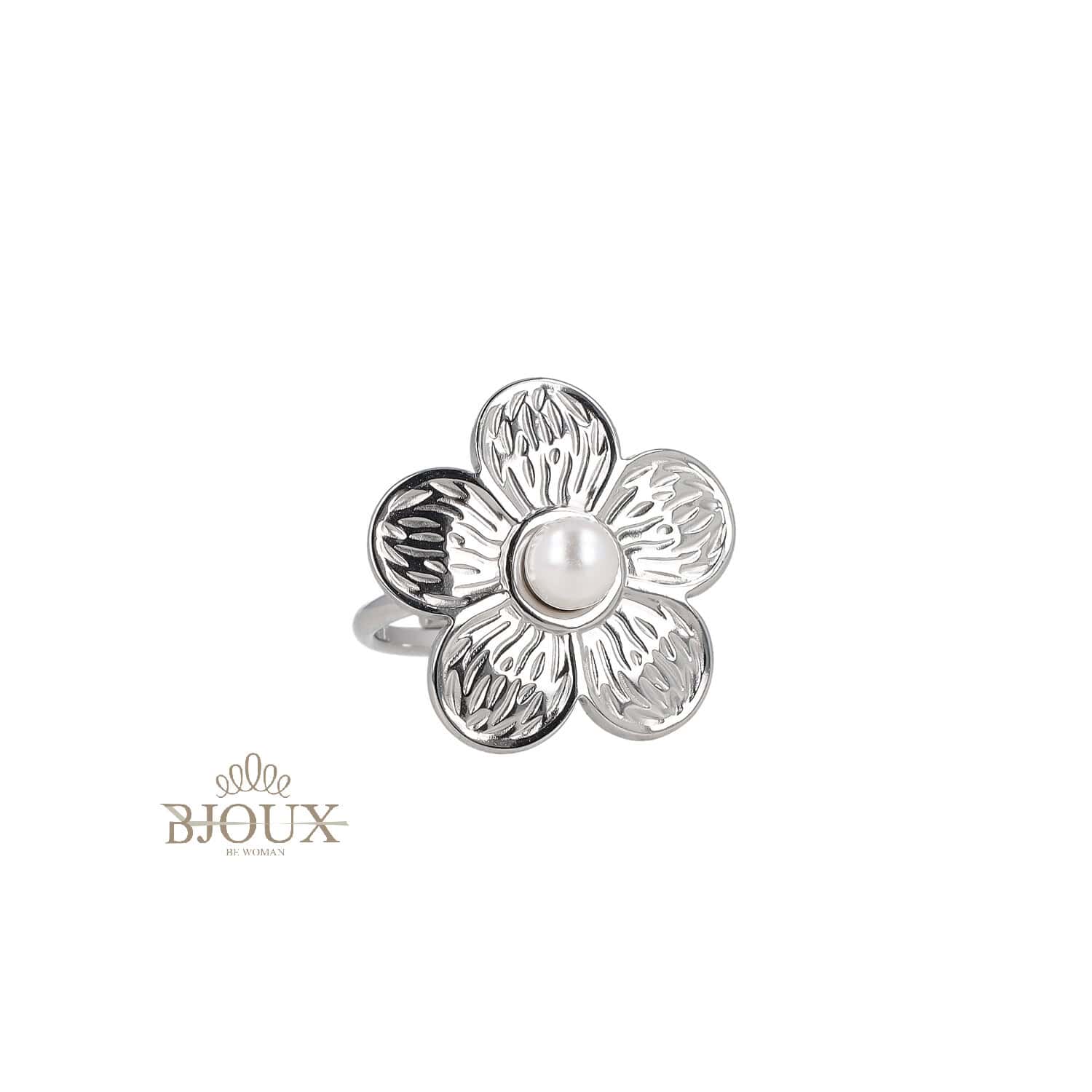 Fiore a cinque petali con perla centrale, raffinato e romantico. Ideale per chi ama gioielli femminili e delicati.