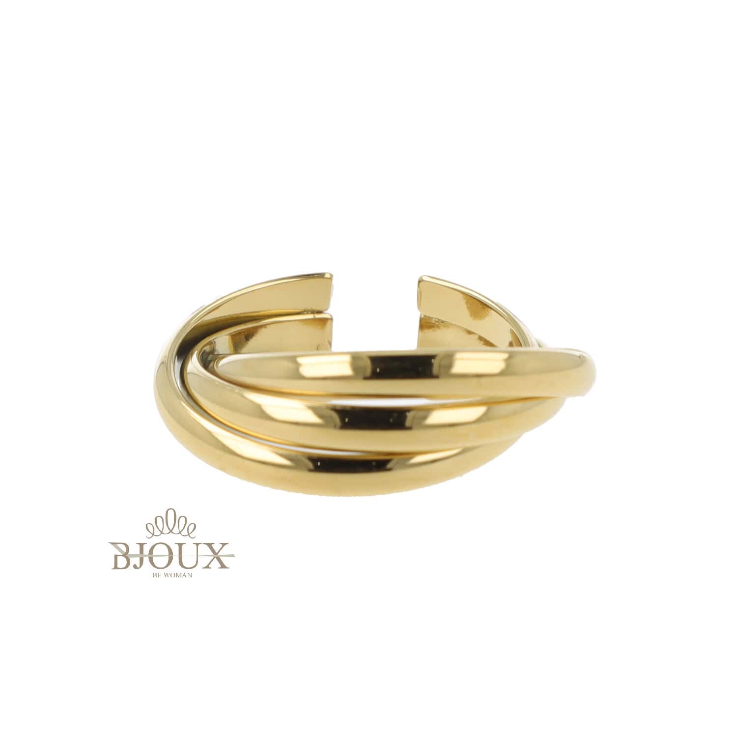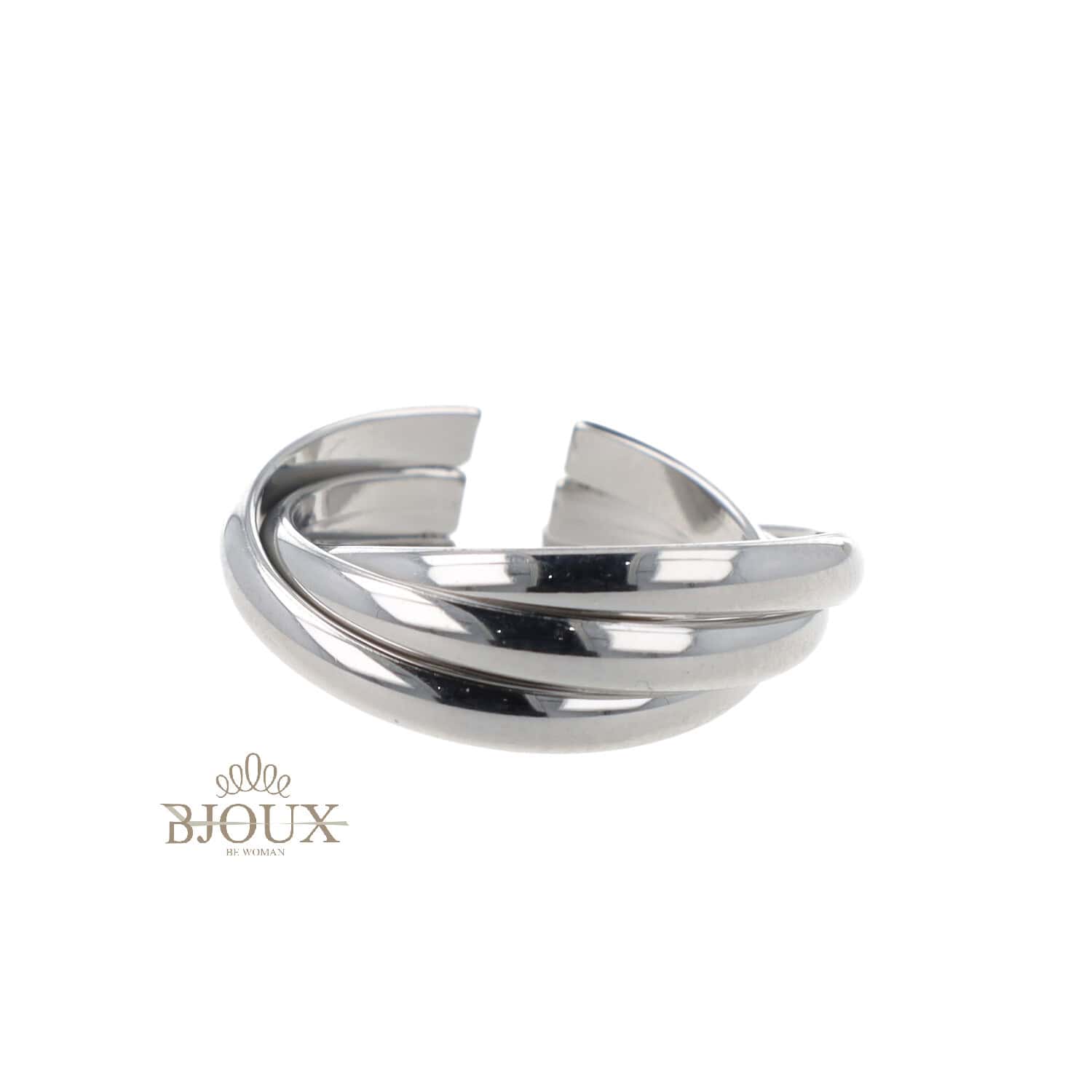 Anello bijoux in acciaio inossidabile con fasciaย regolabile. Anello a tre fasce lucide intrecciale , altezza massima 0,90 cm