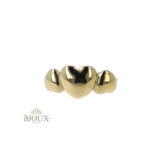Anello bijoux in acciaio inossidabile con fasciaย regolabile. Anello lucido con tre cuori a gradazione, Cuoricino centrale da 0,80 cm