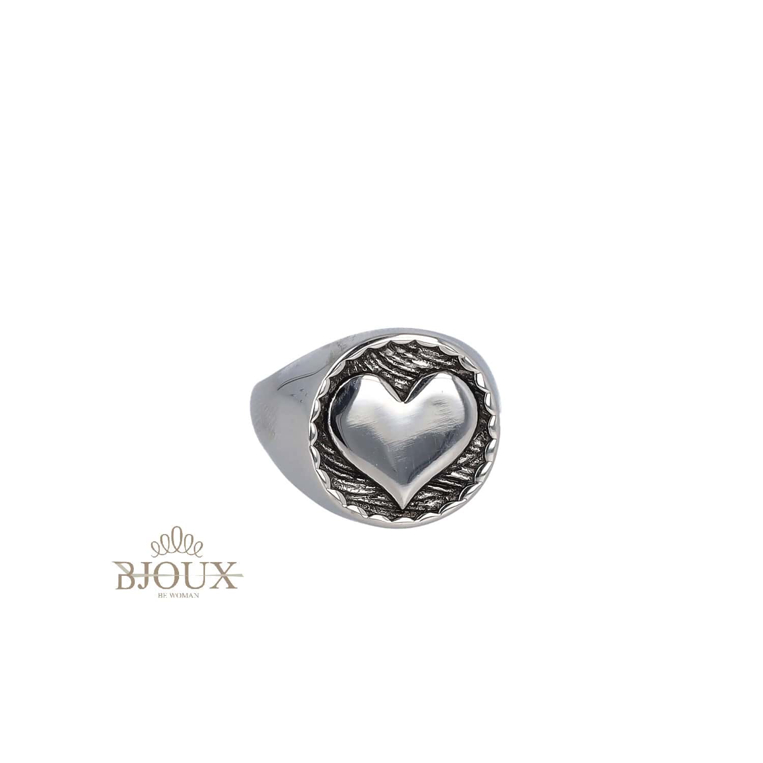 Anello bijoux in acciaio inossidabile con fasciaย regolabile. Anello da mignolo con cuore centrale, diametro 1,5 cm