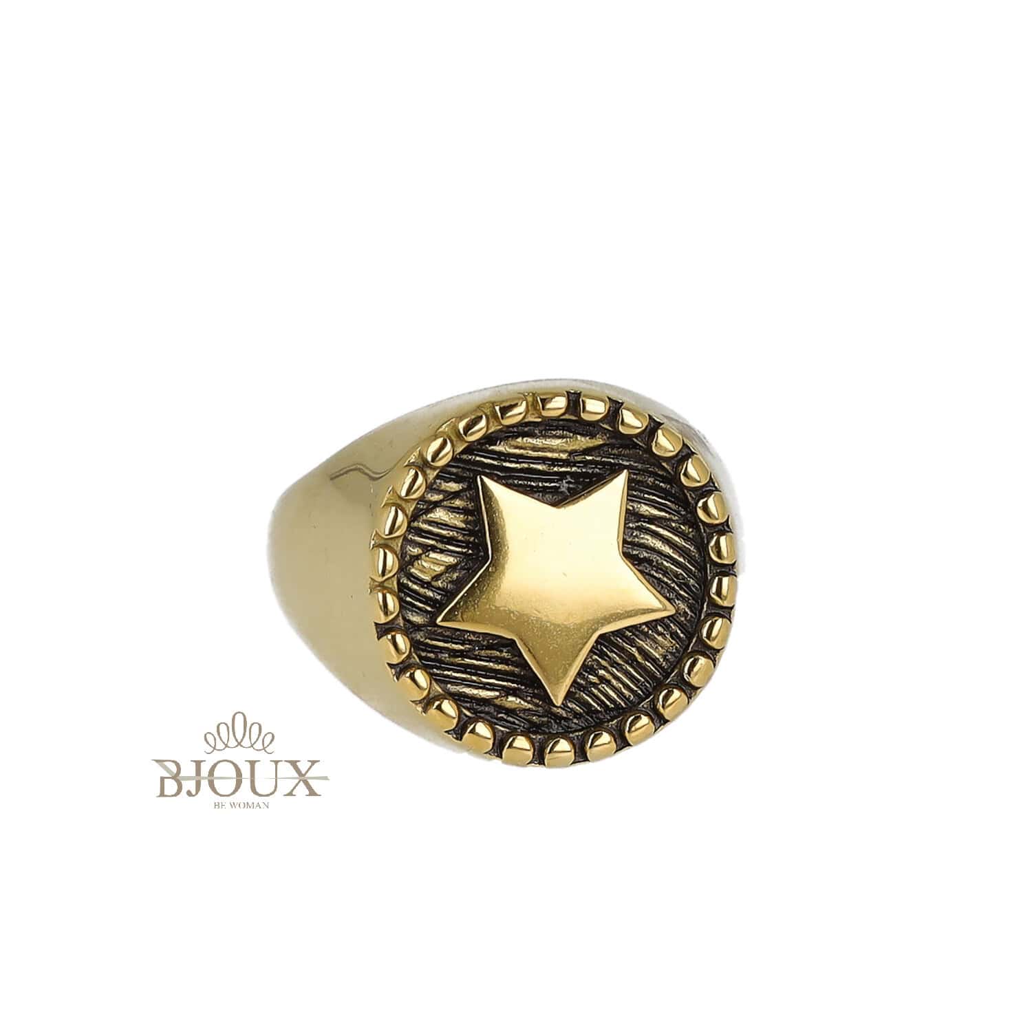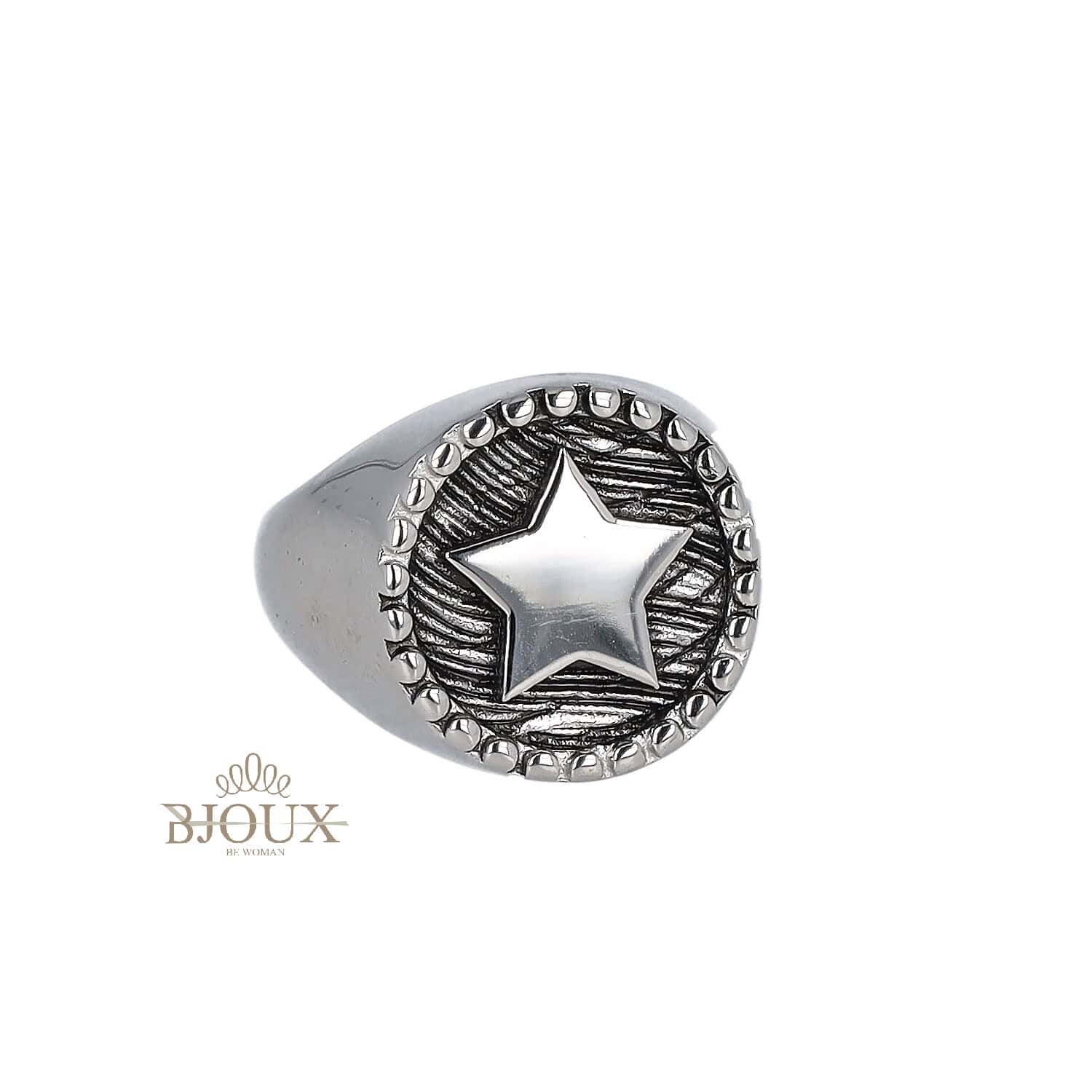 Anello bijoux in acciaio inossidabile con fasciaย regolabile. Anello da mignolo con stella centrale, diametro 1,5 cm