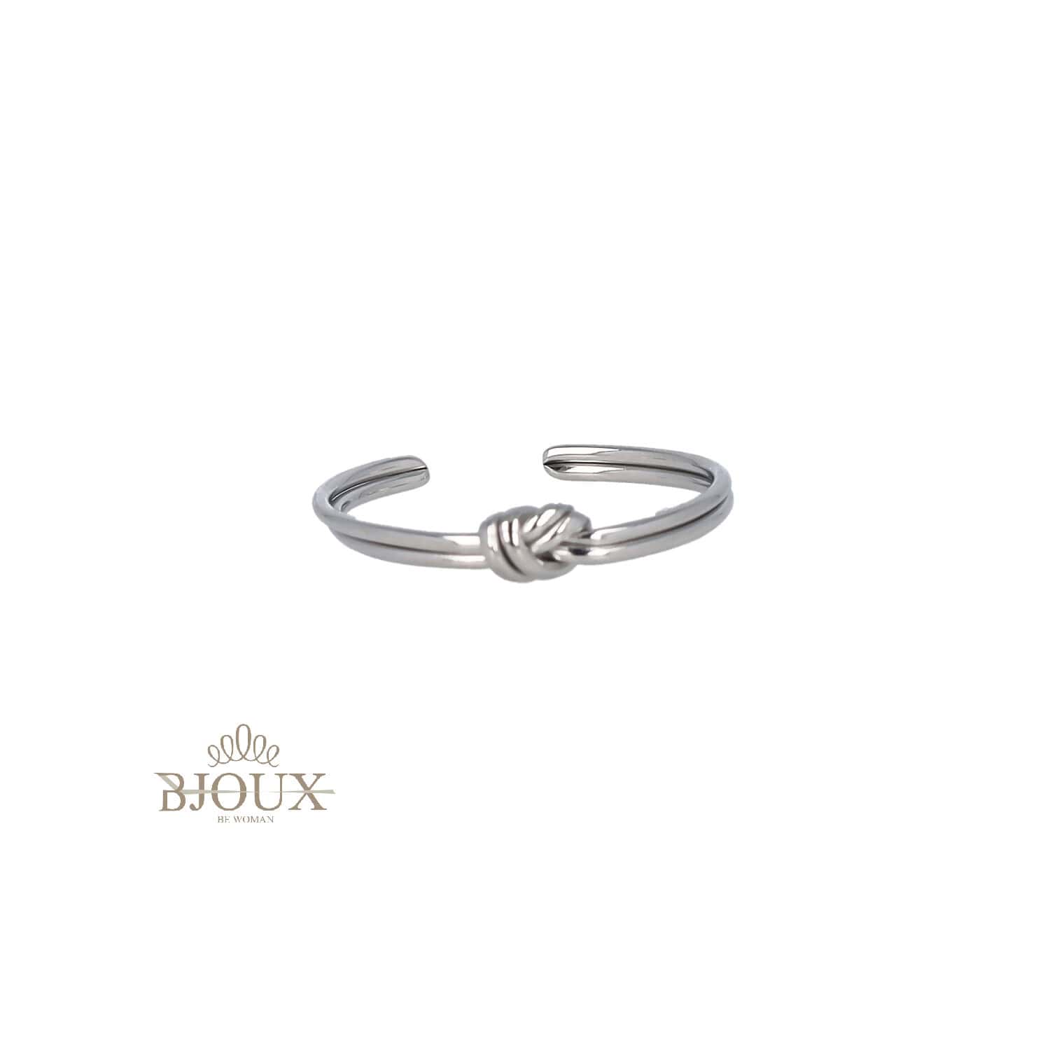 Anello in acciaio inossidabile anallergico con fascia aperta regolabile. Anello fascia acciaio con nodino 0,3 mm