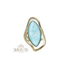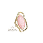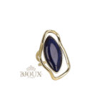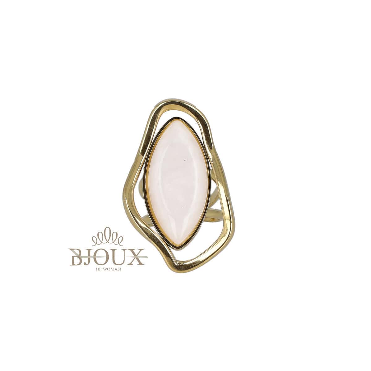 Anello con montatura in acciaio inossidabile dorata dal design astratto e irregolare che incastona una pietra centrale di forma marquise.
