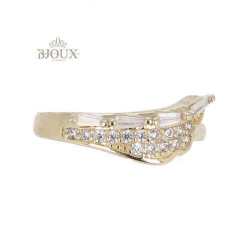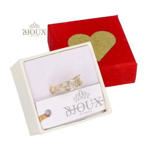Anello di bigiotteria in ottone dipinto con fascia a misura regolabile. Ala con strass . Astuccio regalo 5×5