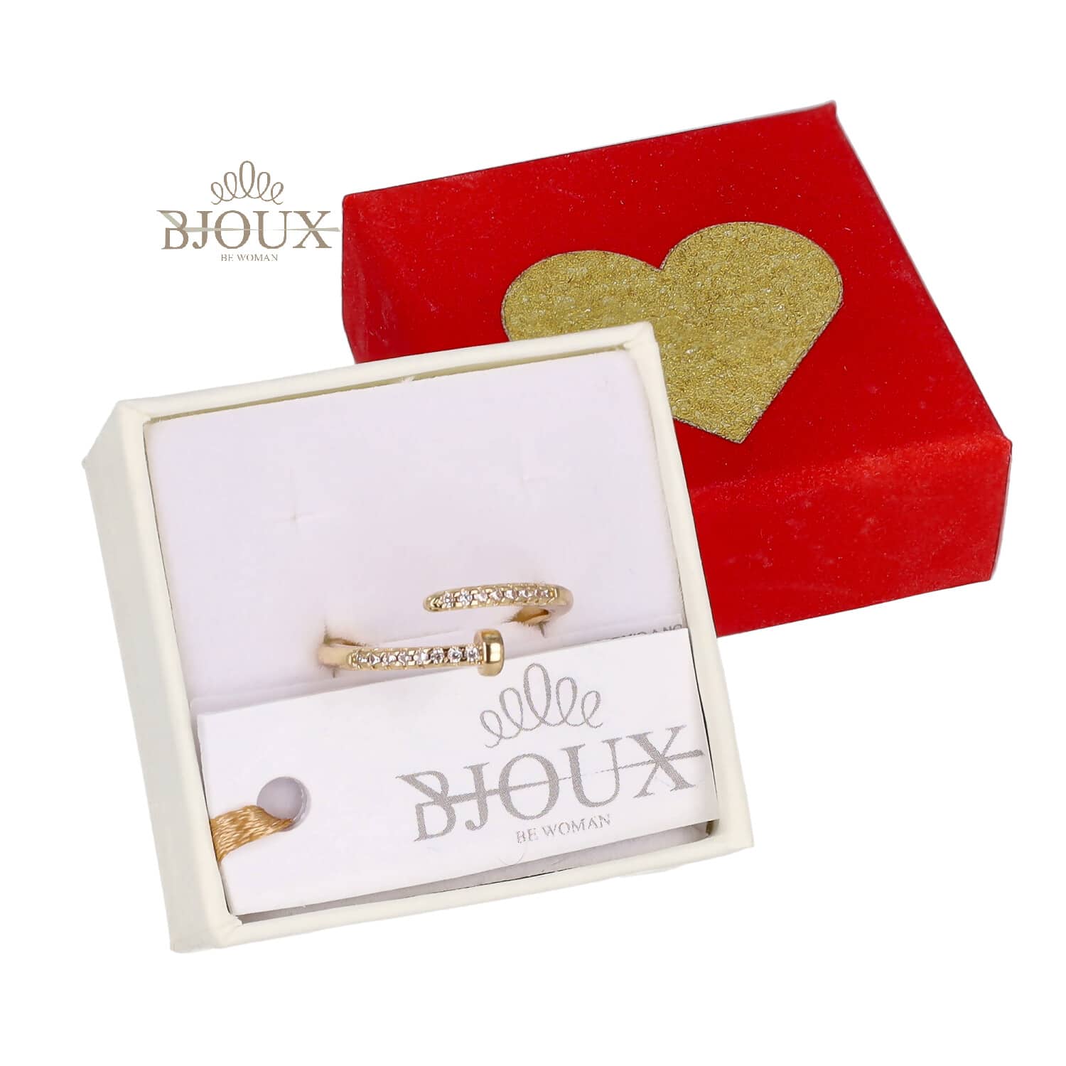Anello di bigiotteria in ottone dipinto con fascia a misura regolabile. Chiodo con strass . Astuccio regalo 5×5