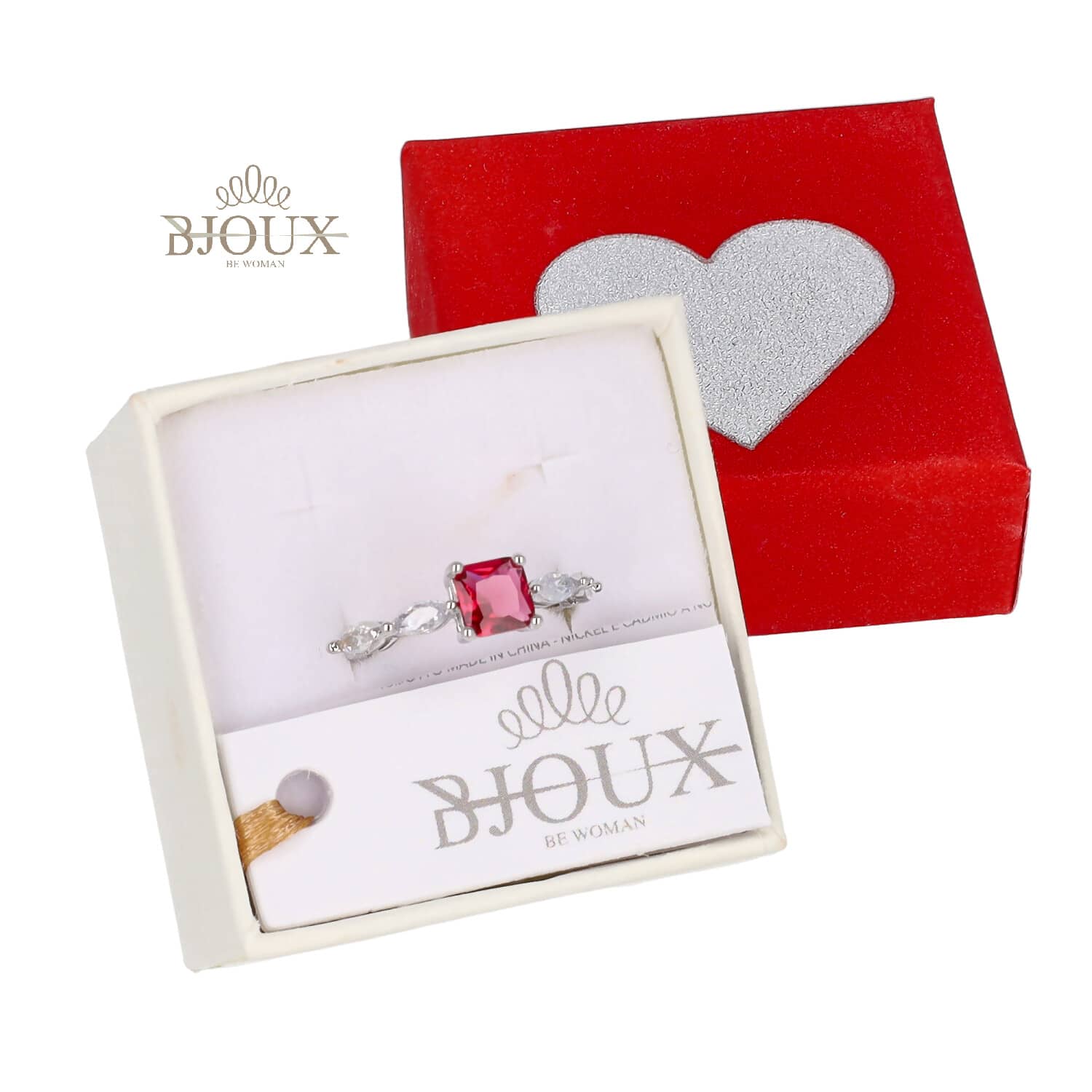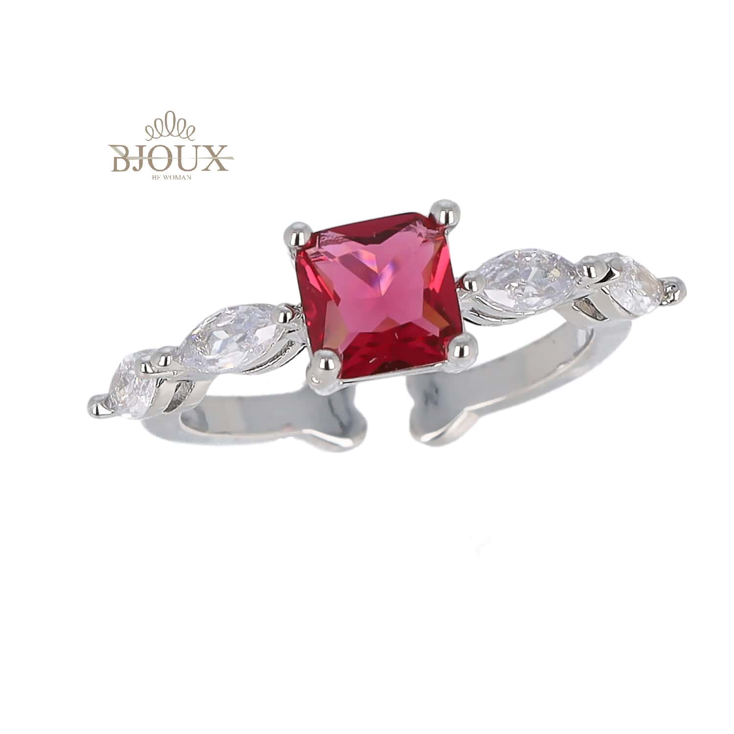 Anello di bigiotteria in ottone dipinto con fascia a misura regolabile. Con pietra centrale colorata e strass kry. Astuccio regalo 5×5