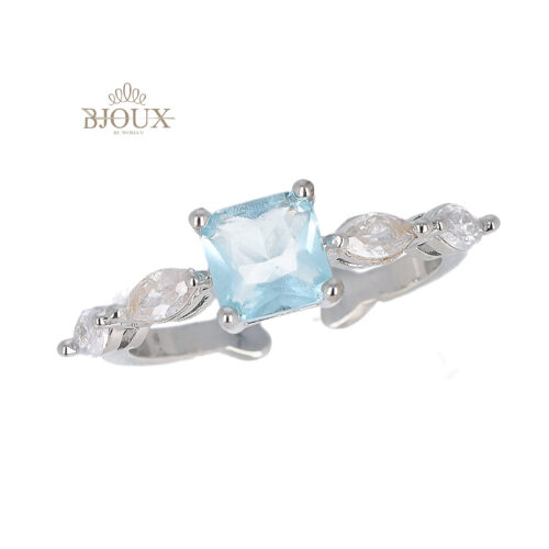 Anello di bigiotteria in ottone dipinto con fascia a misura regolabile. Con pietra centrale colorata e strass kry. Astuccio regalo 5×5