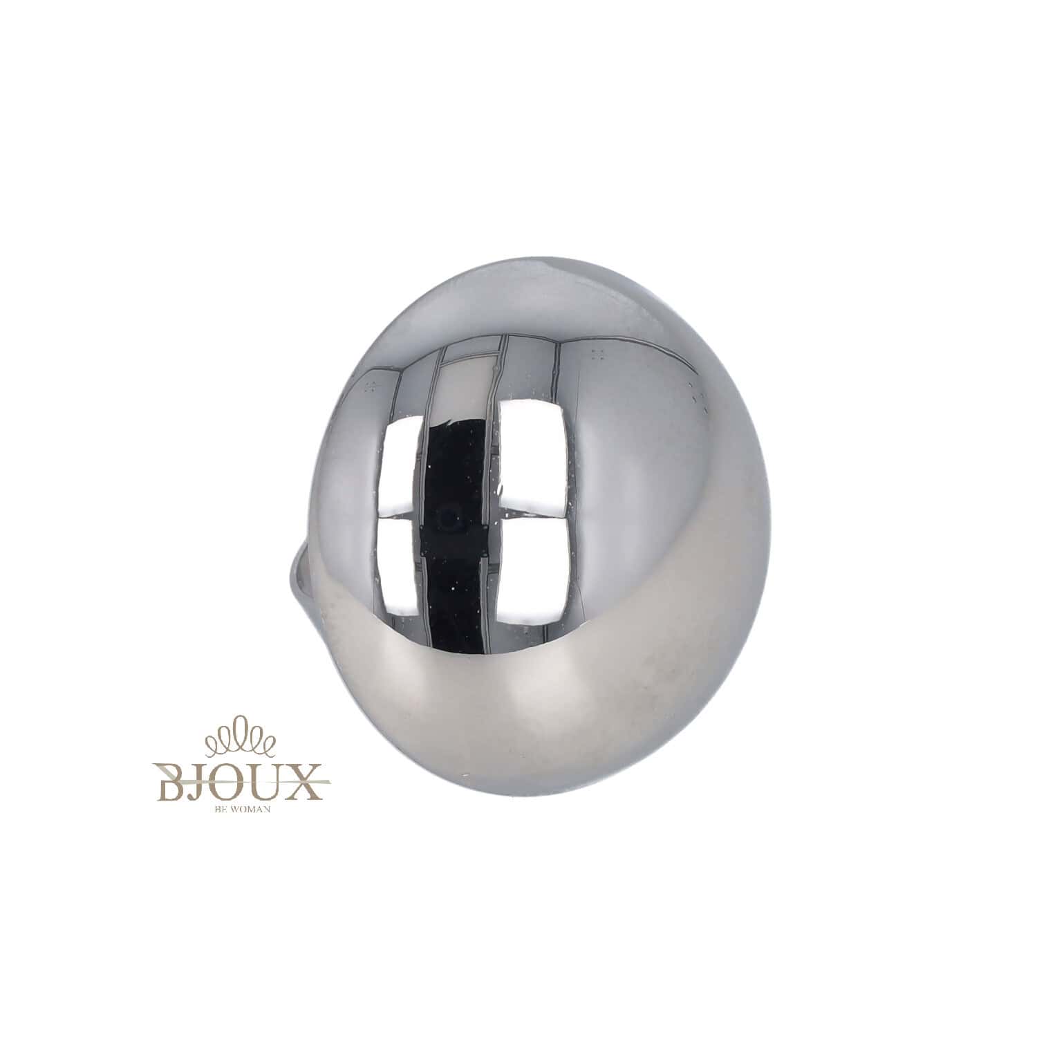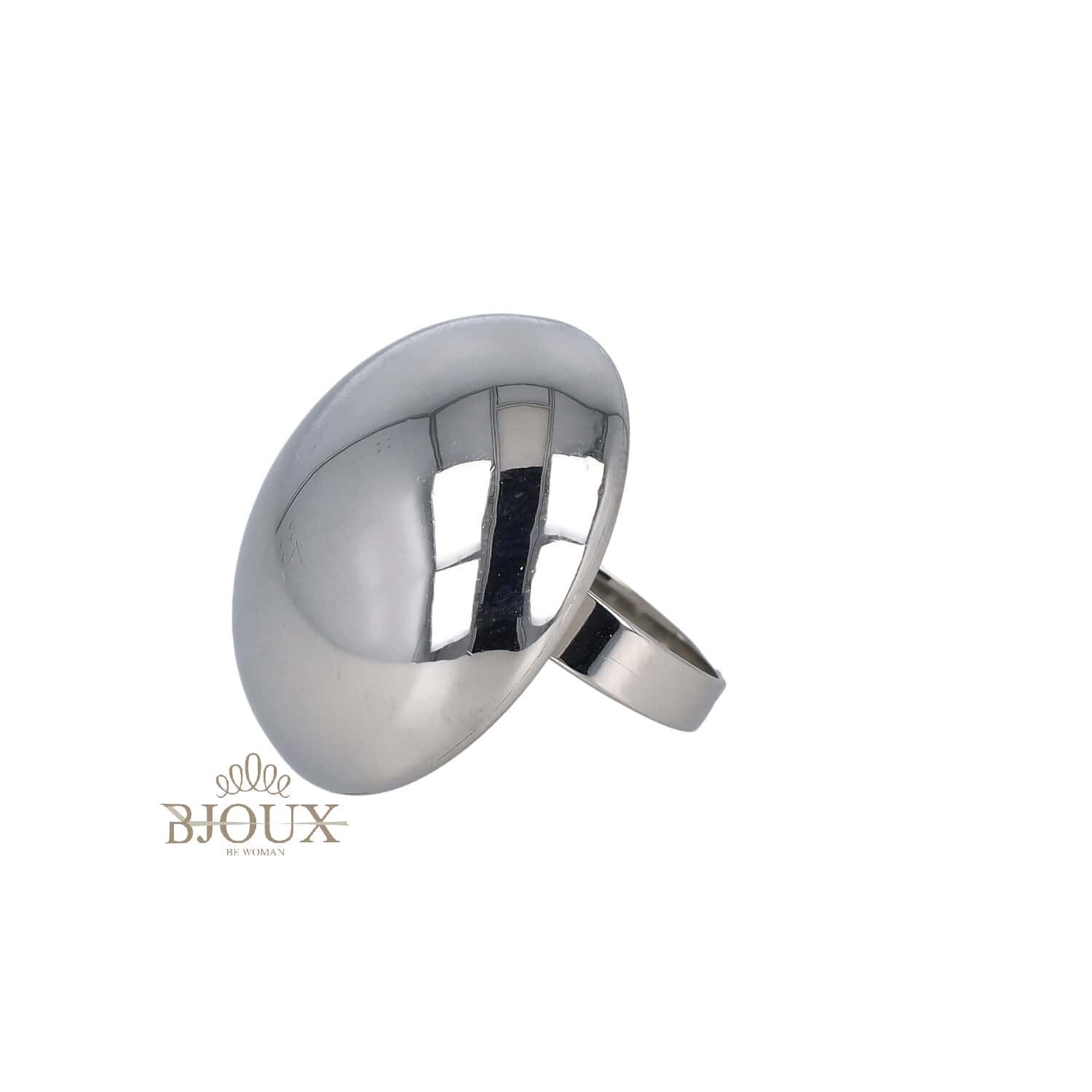 Anello regolabile in acciaio inox dipinto, fascia regolabile. Anello con tondo bombato da 3 cm di diametro, effetto lucido. In oro o in rodio