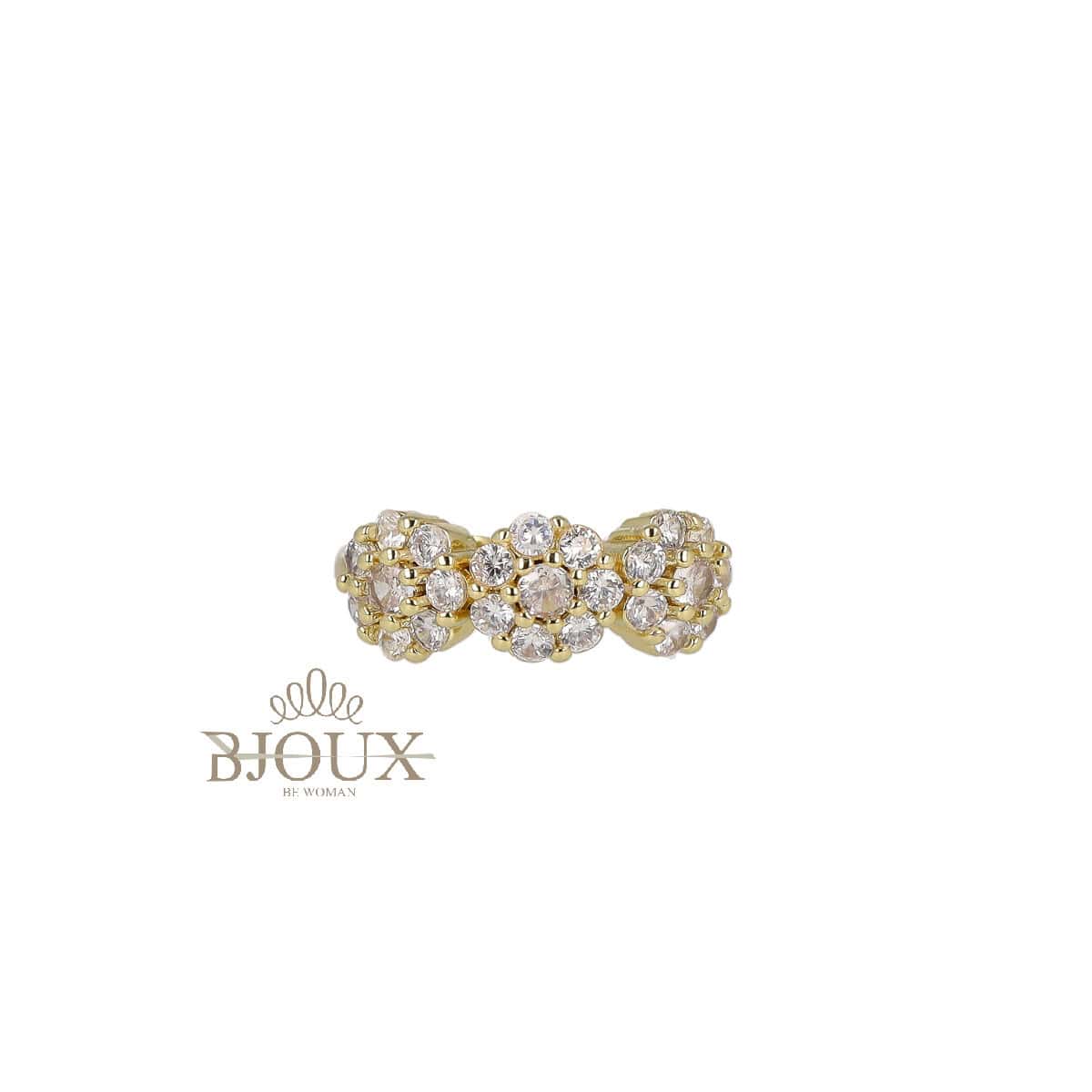 Anello donna in ottone anallergico con fascia regolabile composta da tre fiorellini luminosi.