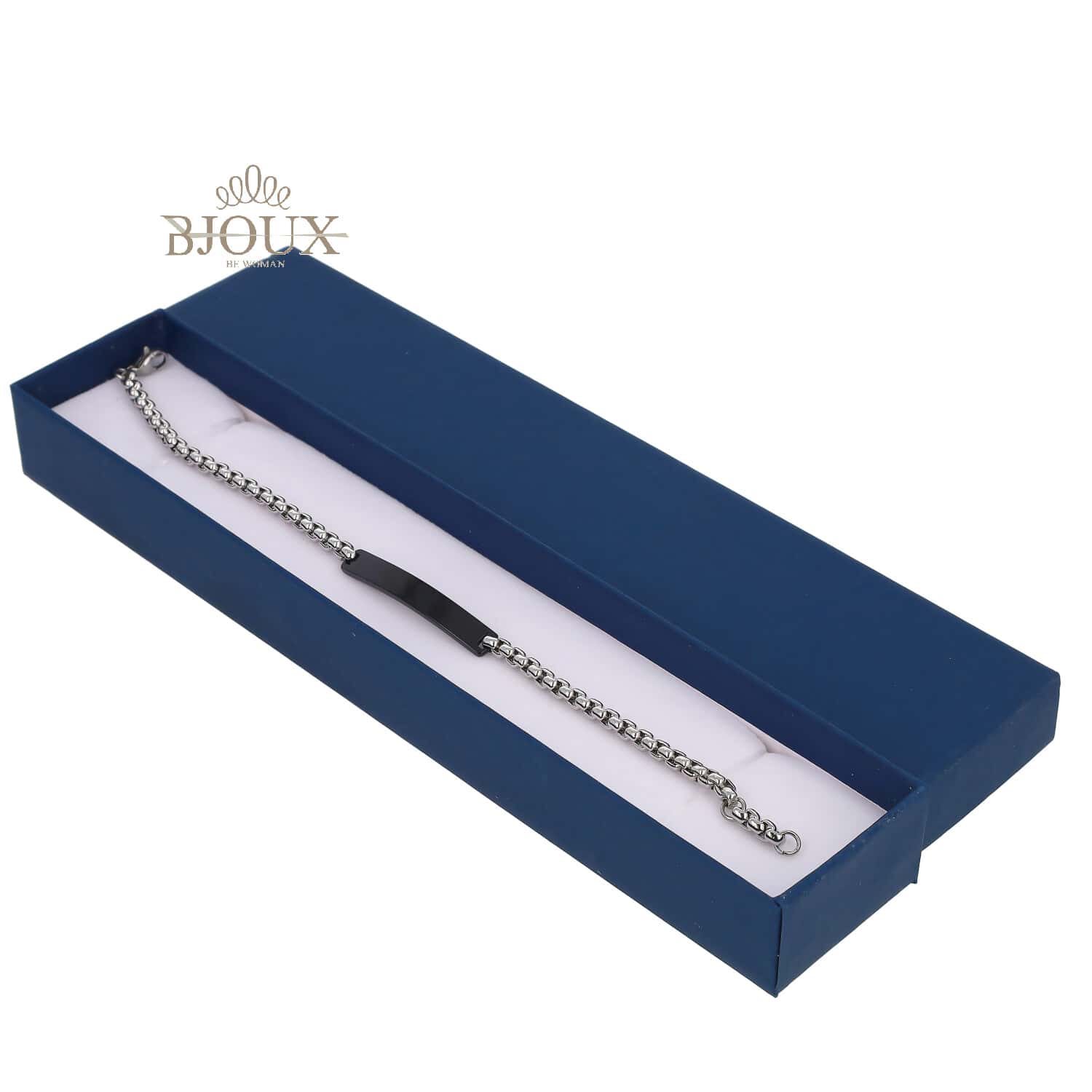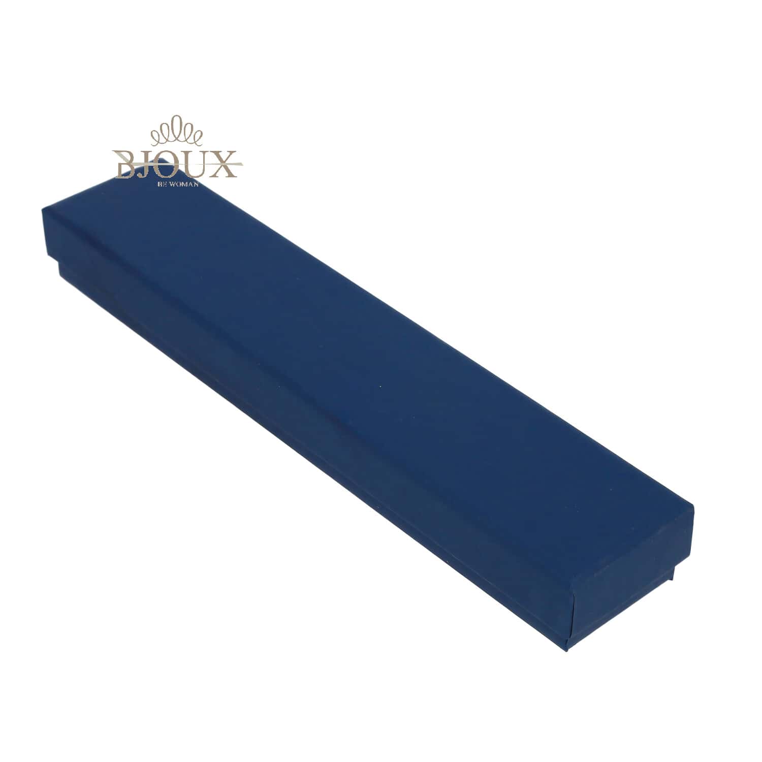 Astuccio per bracciali in cartonato colore blu 21,5 x 4,5 cm altezza 2,5 cm con fustella interna in velluto bianco perforata. Confezione da 6 pezzi