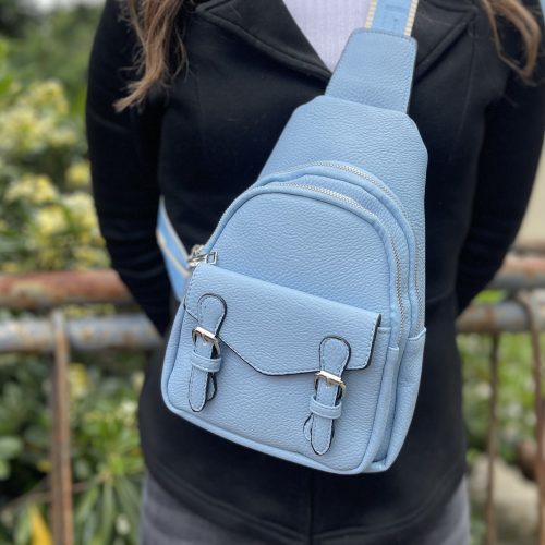 Borsa mono spalla da donna in ecopelle colorata con chiusure zip e fibbie, tracolla colorata. Misure 34x18x8