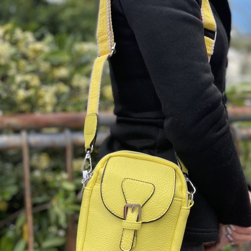 Borsetta da donna in ecopelle colorata con chiusure zip , tracolla colorata. Misure 19x15x7