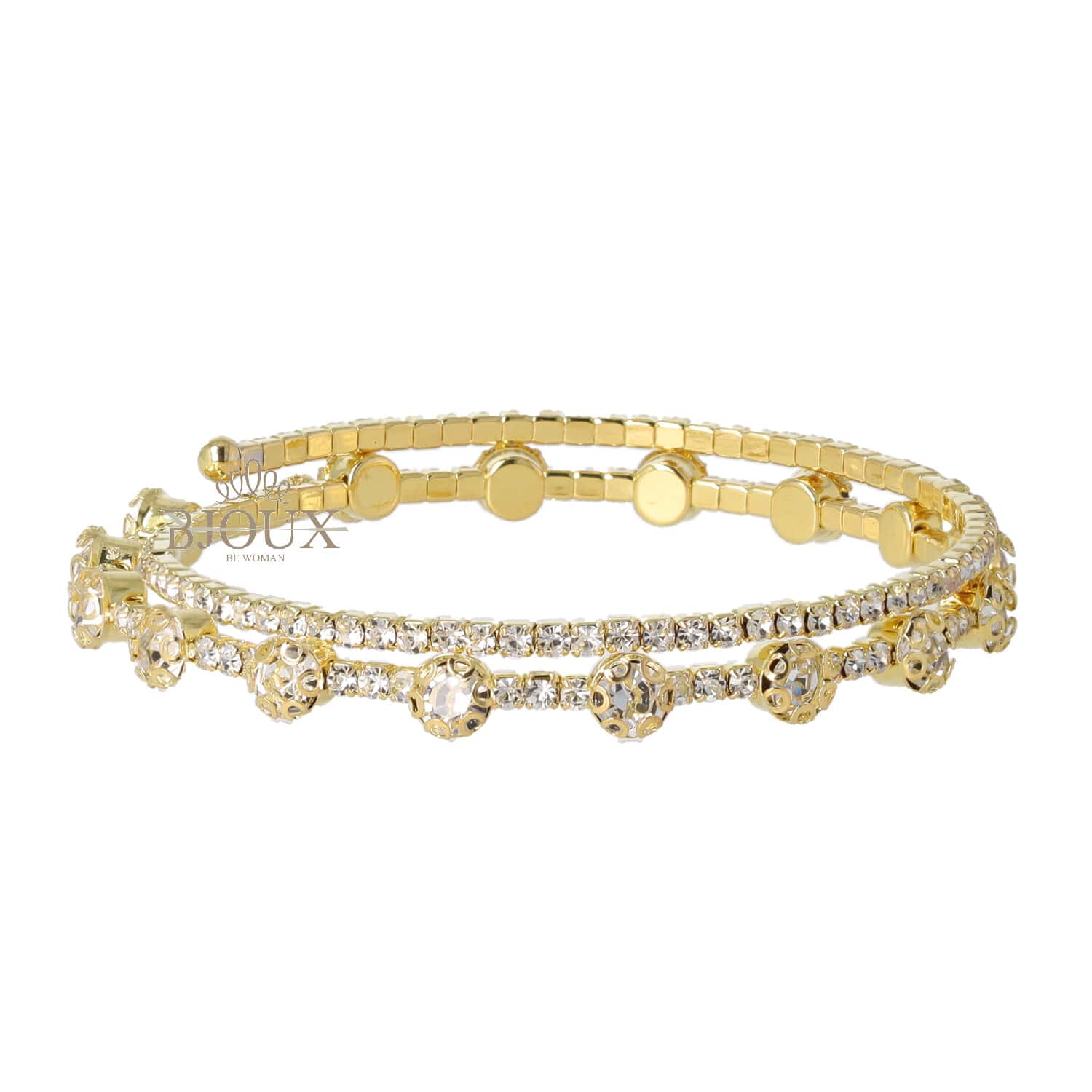 Bracciale bigiotteria in ottone dipinto a spirale con decoro di zirconi color kry. Due fili