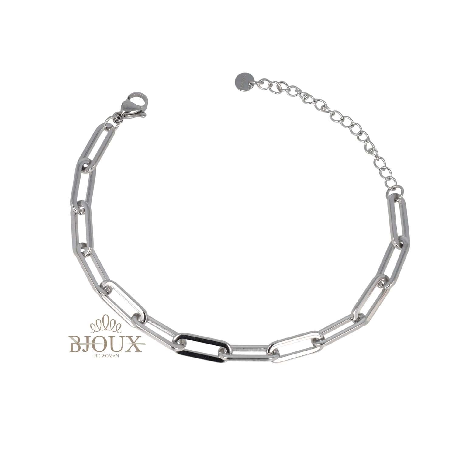 Bracciale catena base in acciaio inox anallergico, Lunghezza 17+5 cm estensione. Catena ovale intrecciata