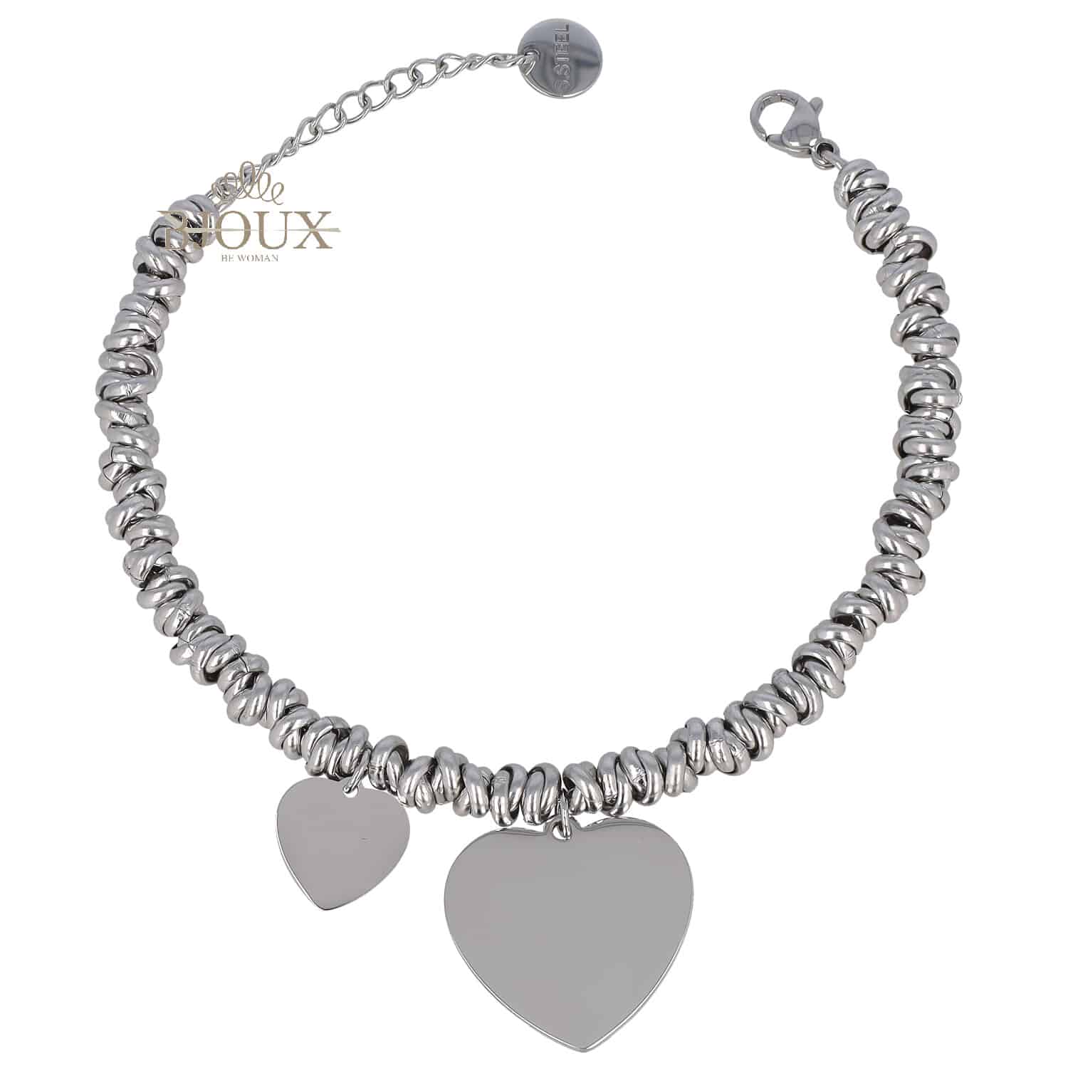 Bracciale bigiotteria in acciaio inossidabile modello ad anellini con pendenti cuori per incisione