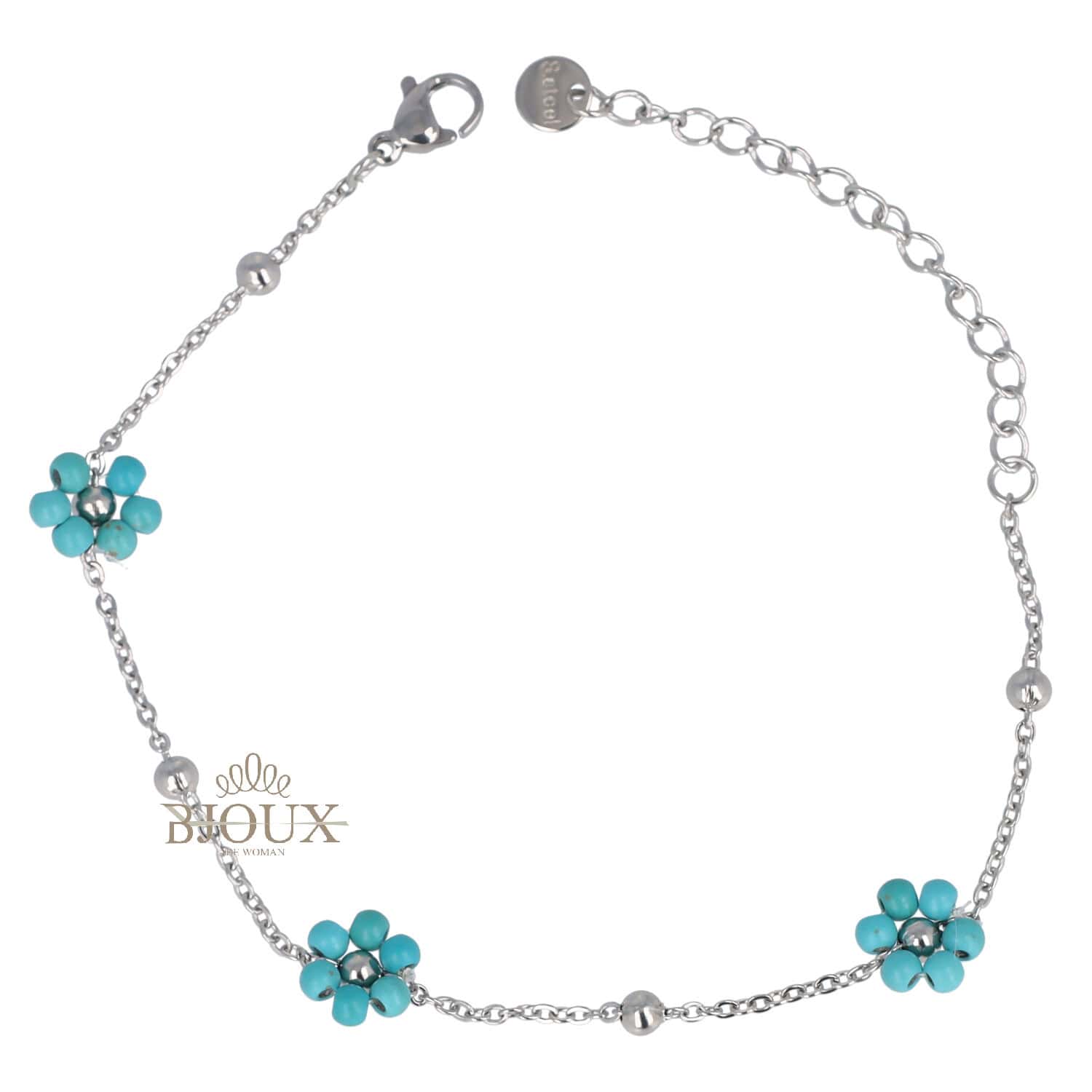 Bracciale bigiotteria in acciaio inossidabile 16+5 cm di estensione con margherite in legno colorato