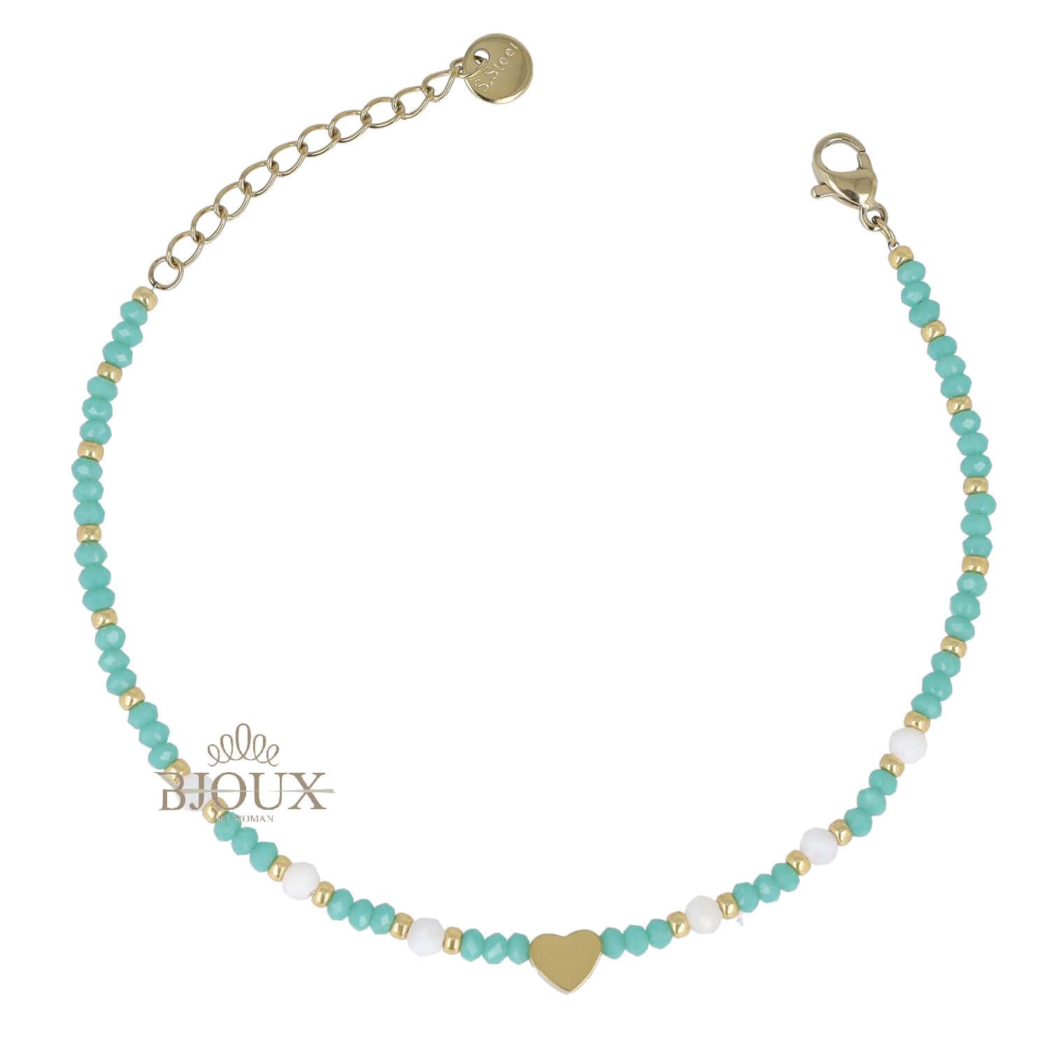 Bracciale bigiotteria in acciaio inossidabile con estensione, base gold con microsfere in metallo e gold con cuoricino