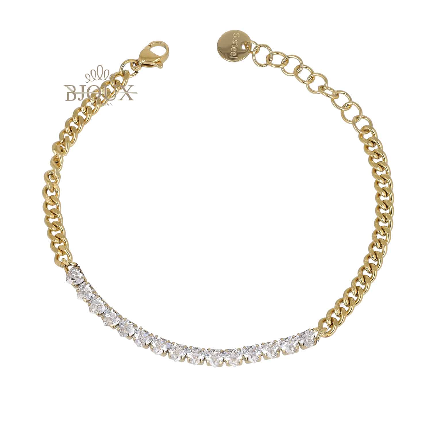Bracciale bigiotteria in acciaio inossidabile modello a catena con baguette di strass kry a forma di cuore