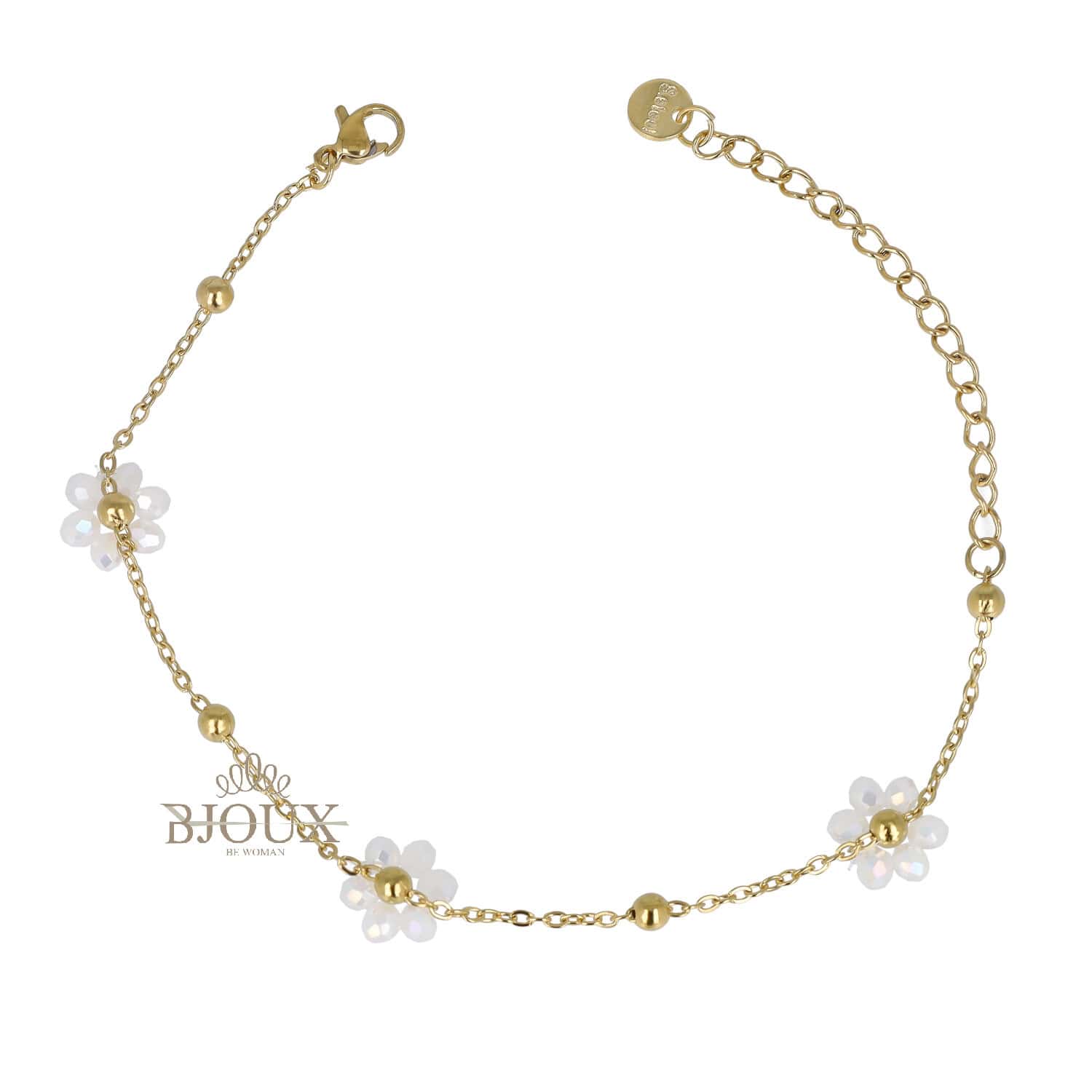 Bracciale bigiotteria in acciaio inossidabile 16+5 cm di estensione con margherite in vetro colorato