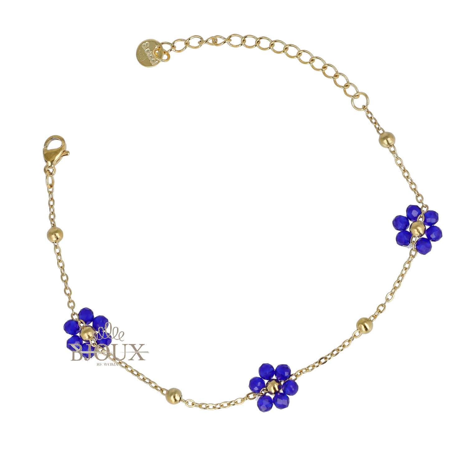 Bracciale bigiotteria in acciaio inossidabile 16+5 cm di estensione con margherite in vetro colorato