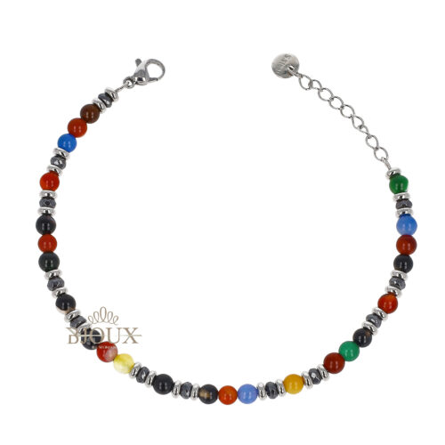 Bracciale talismano in acciaio inossidabile con pietre dure.