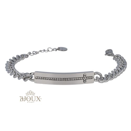 Bracciale di bigiotteria da uomo con chiusura e targa in acciaio inossidabile con croce con zirconi neri