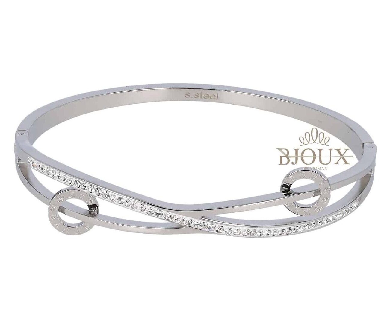 Bracciale bigiotteria da donna in acciaio con chiusura laterale. Bracciale ad onda con decoro di zirconi.