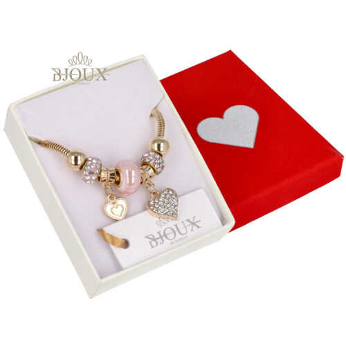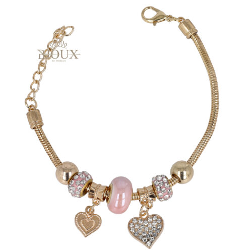 Bracciale beads rosa e cuori d...