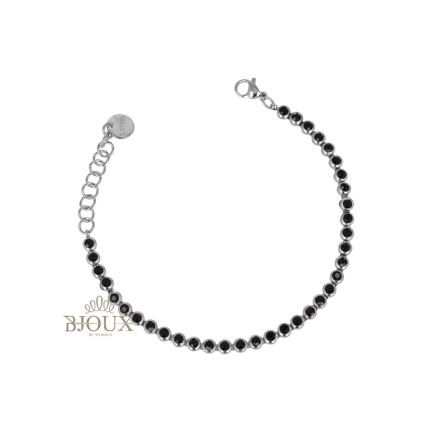 Versione sottile e minimal, caratterizzata da una fila continua di micro cristalli neri da 3 mm. Un gioiello versatile, perfetto da indossare singolo o in combinazione con altri bracciali.