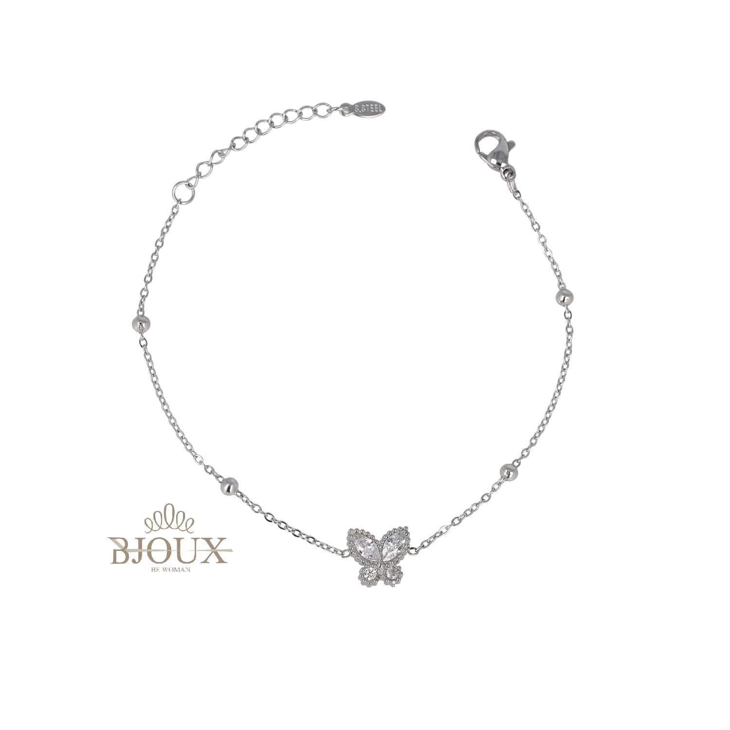 Un bracciale leggero e delicato, arricchito da una farfalla centrale con zirconi incastonati. Simbolo di libertà e bellezza.