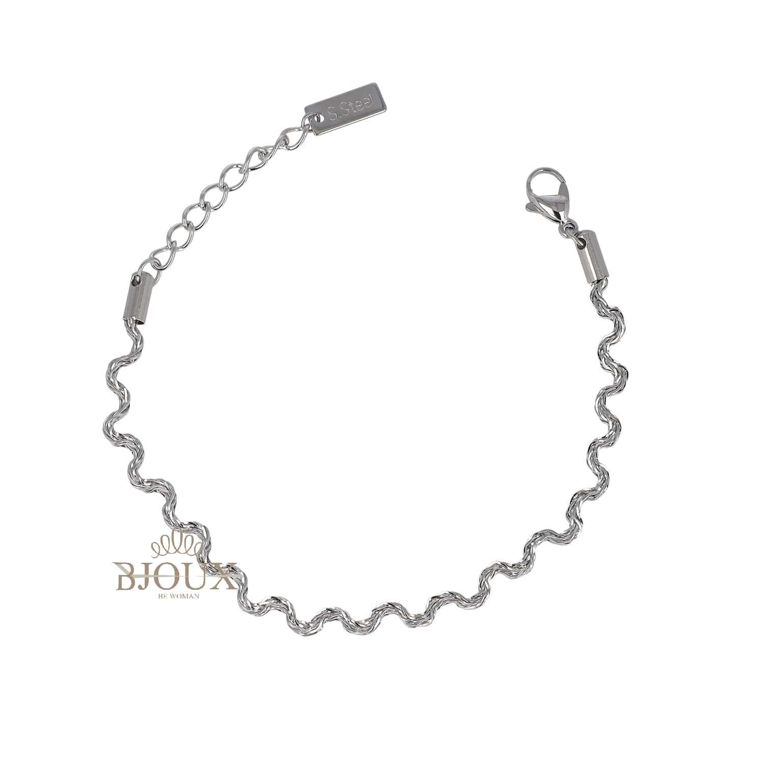 Bracciale di bigiotteria in acciaio inossidabile anallergicoย , lunghezza catenina 17 cm + 5 cm estensione composta da acciaio lavorato ad onda