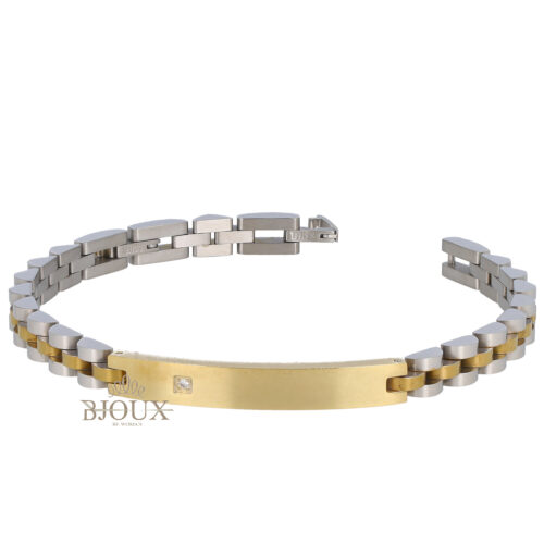 Bracciale in acciaio inossidabile modello catena a maglia con targa e punto luce. Completo di astuccio 21×4,5×2,5 cm