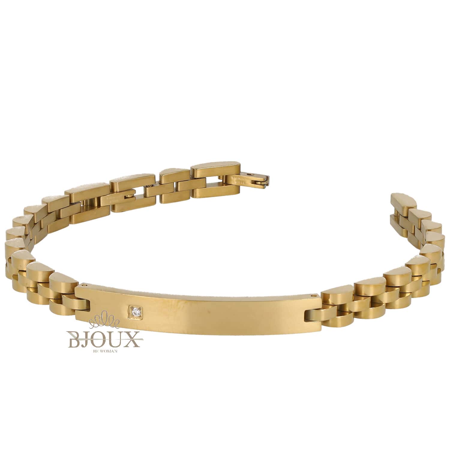 Bracciale in acciaio inossidabile modello catena a maglia con targa e punto luce. Completo di astuccio 21×4,5×2,5 cm