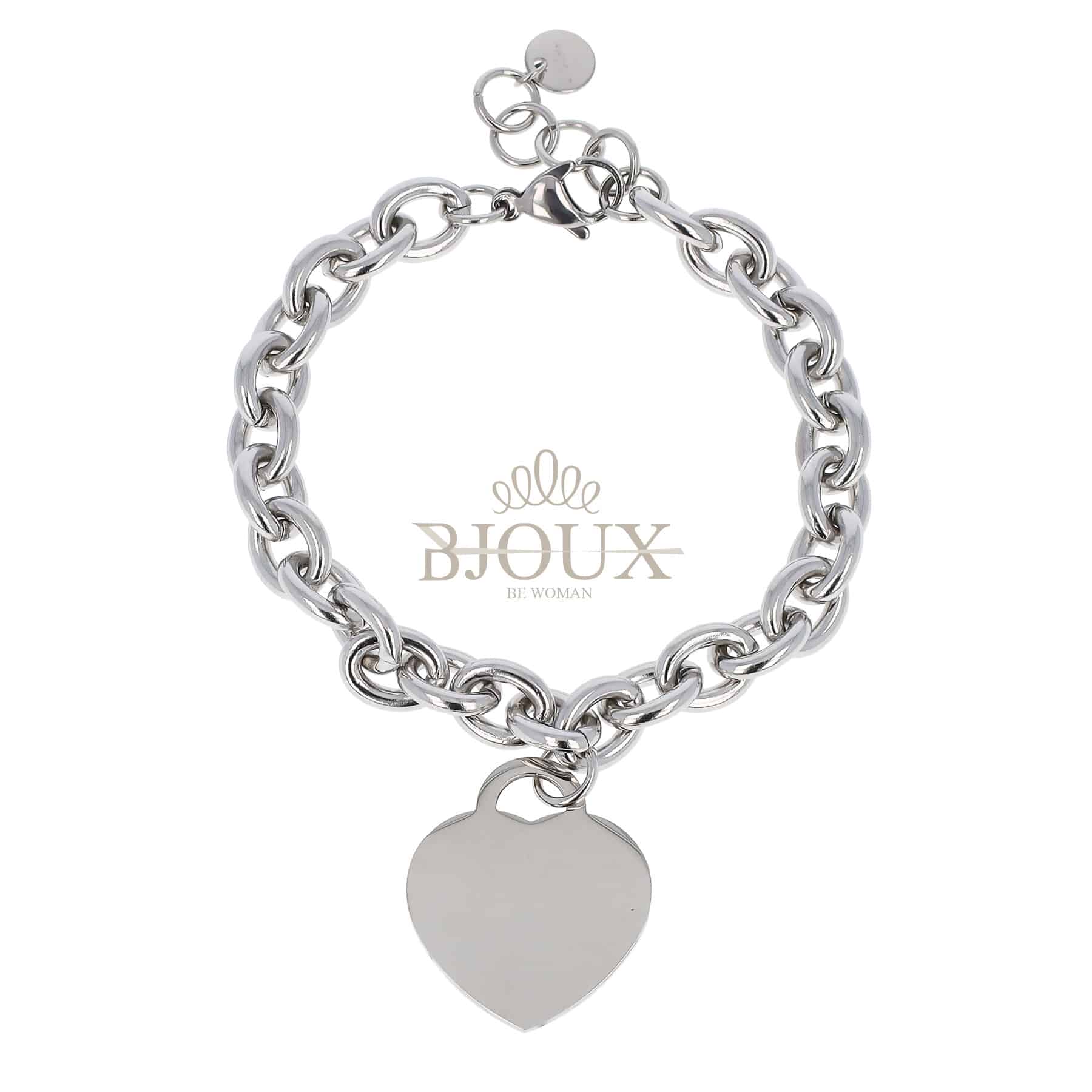Bracciale bigiotteria da donna in acciaio inossidabile a catena con pendente cuore e chiusura regolabile