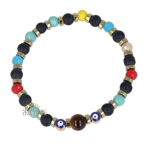 Bracciale talismano con pietre in cristalli multicolore elastico con occhio turco