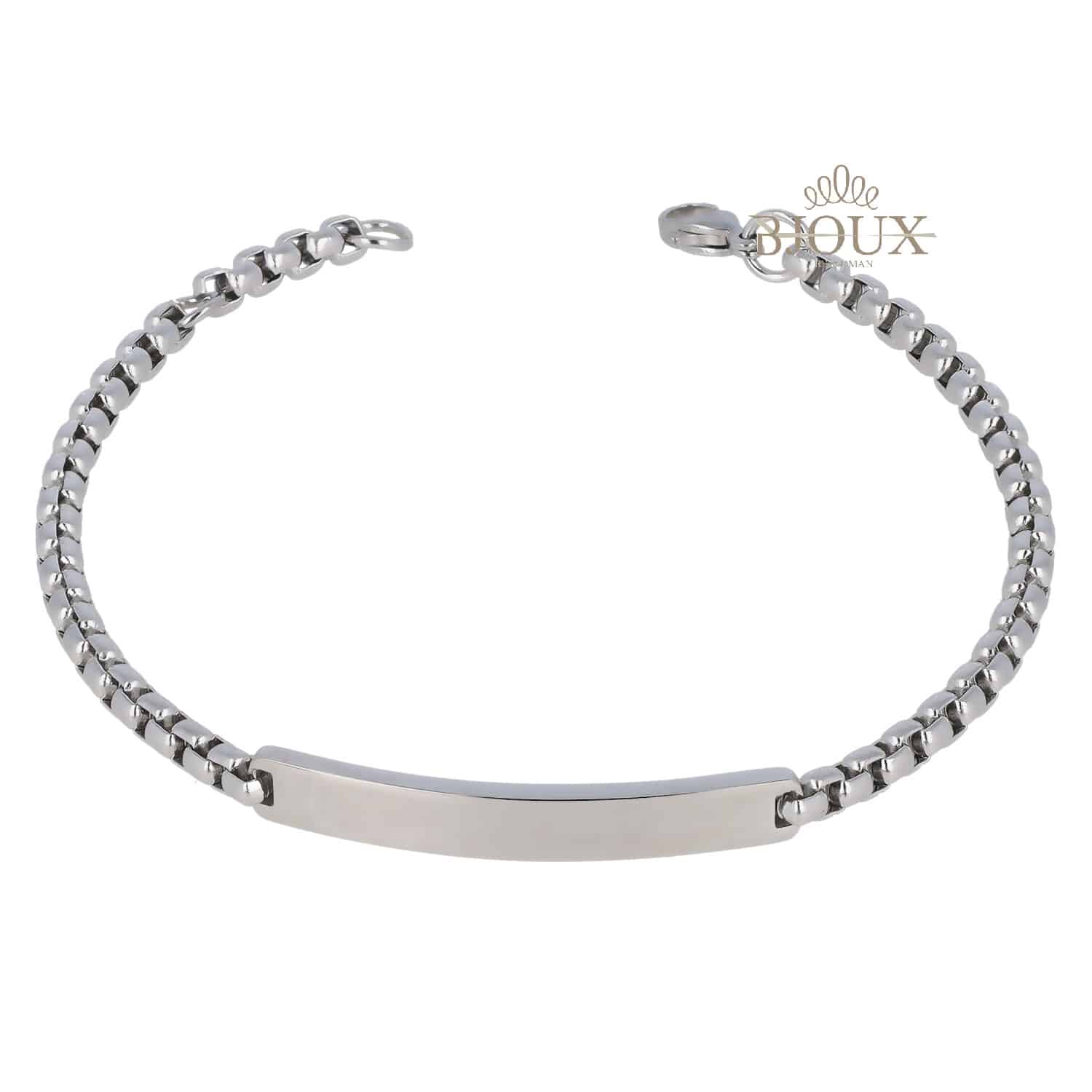 Bracciale di bigiotteria da uomo in acciaio inossidabile rodiato con targhetta per incisione.