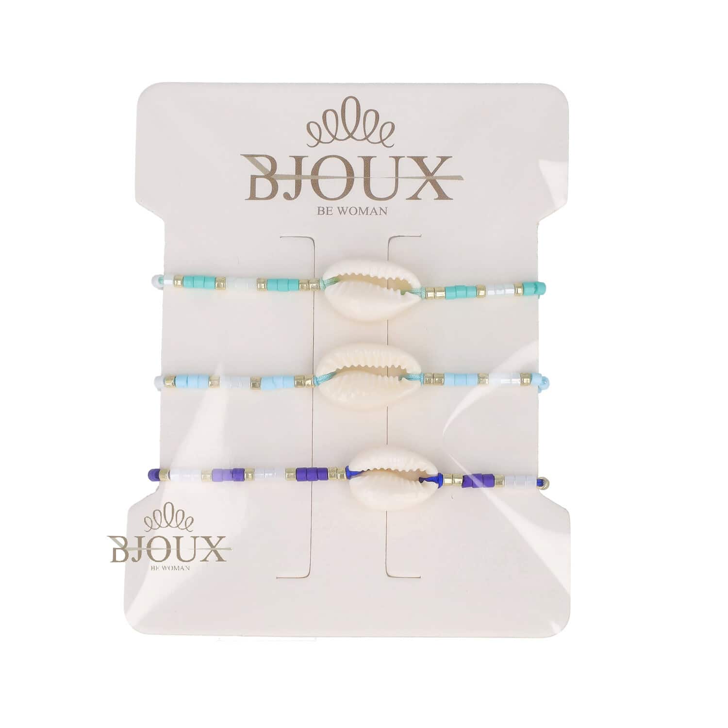 Braccialetti regolabili con laccetto colorato corallini e conchiglia 1 cm. Card da 3 pezzi colori come da foto