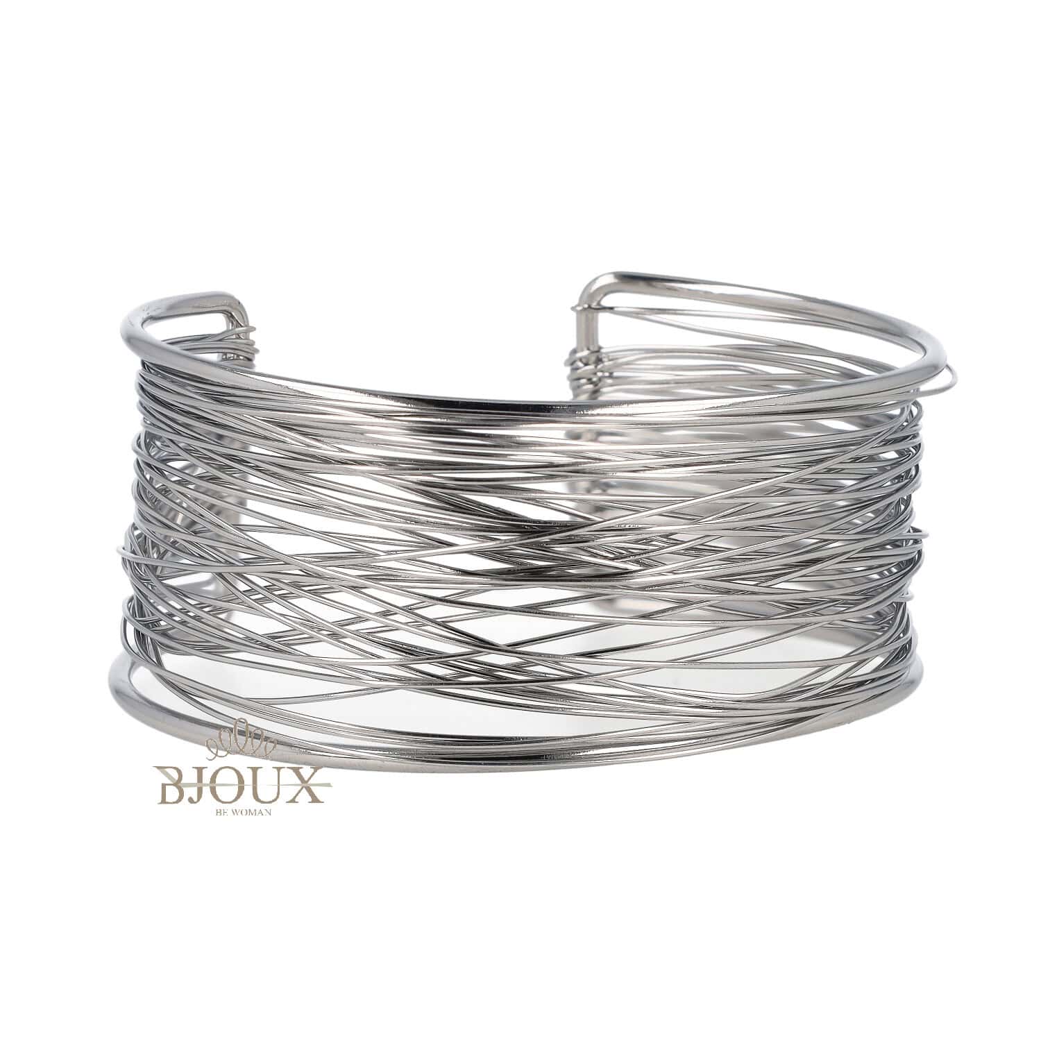 Bracciale rigido a polsiera in acciaio inox anallergico, composto da più fili intrecciati che creano un effetto multistrato. Stile bold e di tendenza, perfetto per completare look fashion. Disponibile oro e argento.