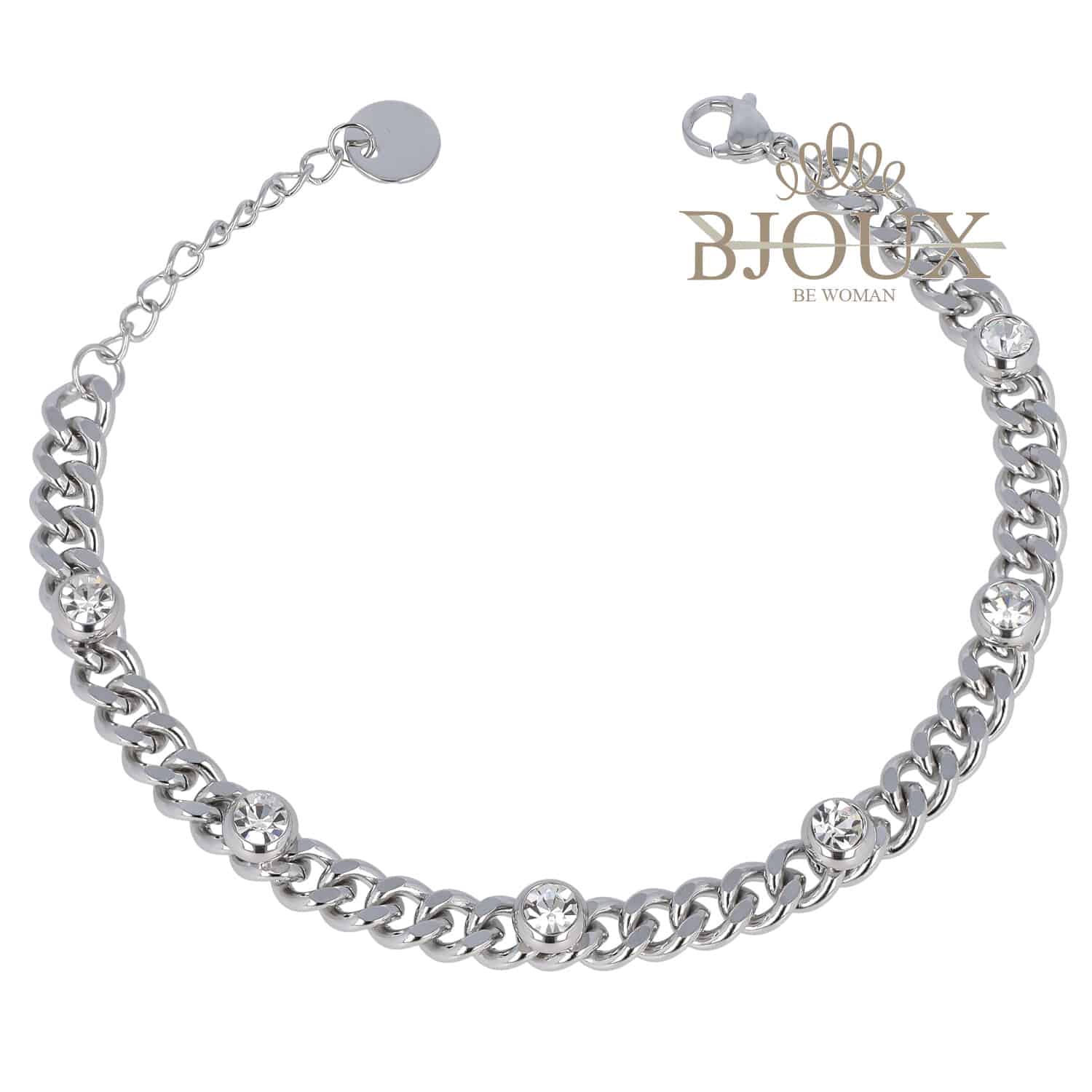 Bracciale bigiotteria da donna in acciaio inossidabile. A catena con punti luce strass