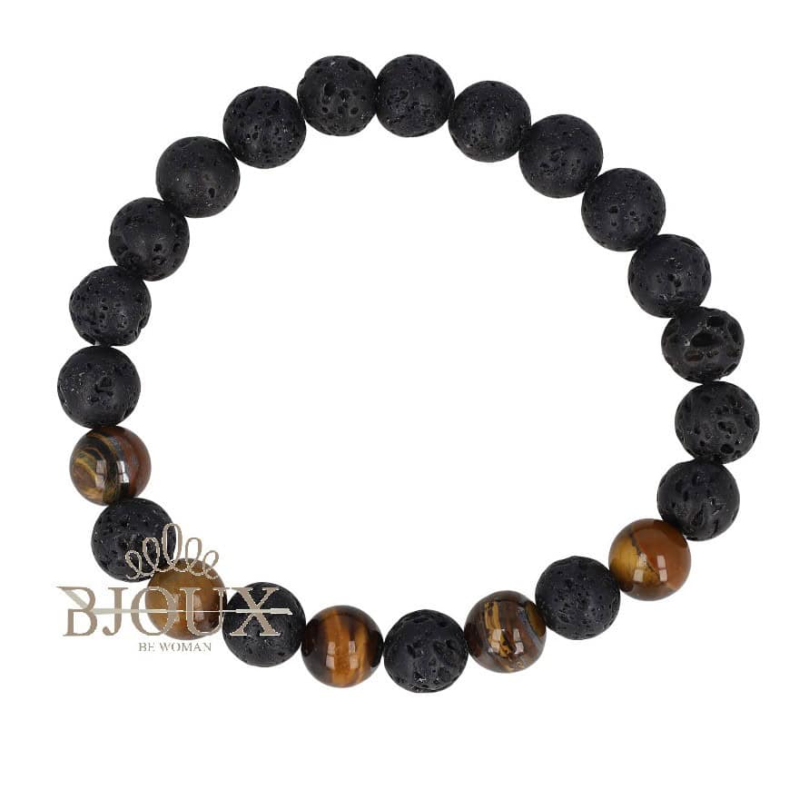 Bracciale di bigiotteria da uomo. Bracciale modello elastico con sfere black e brown